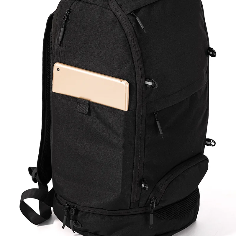 2.Bolsillo de malla colocado en el cuerpo de la bolsa, puede guardar casco, baloncesto, voleibol, balón de fútbol, etc.