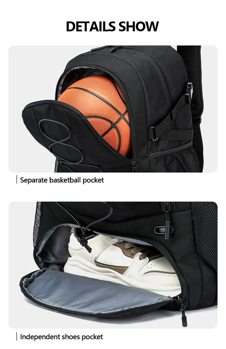 Bolsa de baloncesto multifuncional de gran capacidad, bolsas de almacenamiento para deportes al aire libre, mochila frontal independiente, compartimento independiente para zapatos