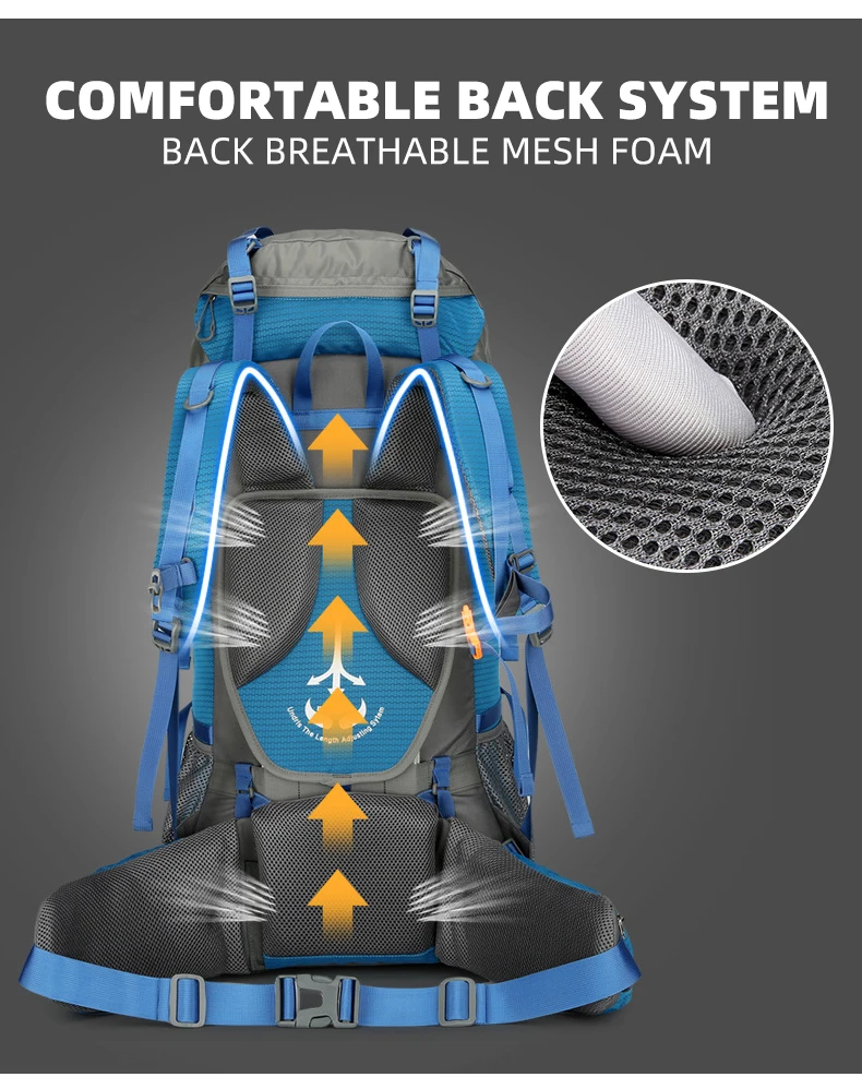 5.Diseño de soporte de aleación trasera, mochila para aliviar la sensación de carga.