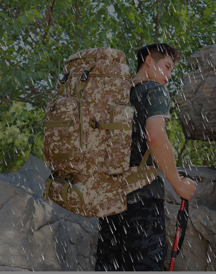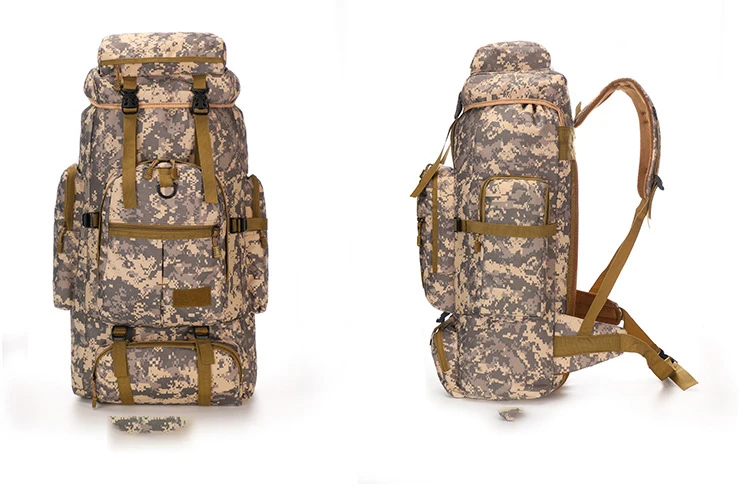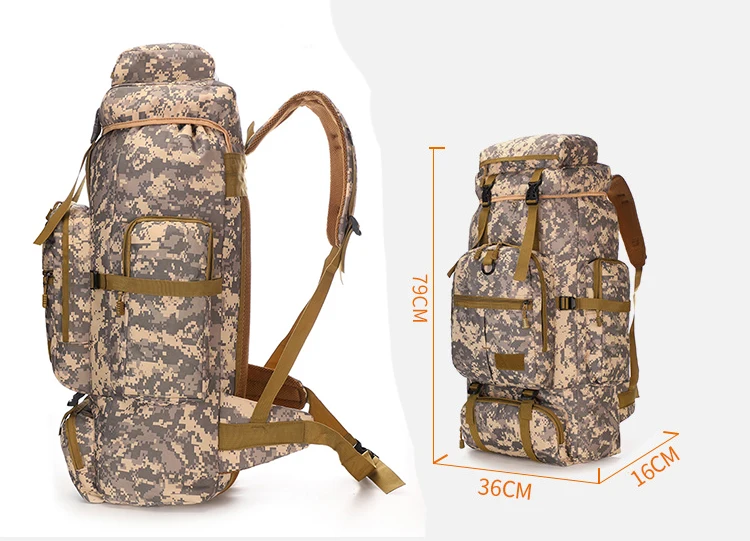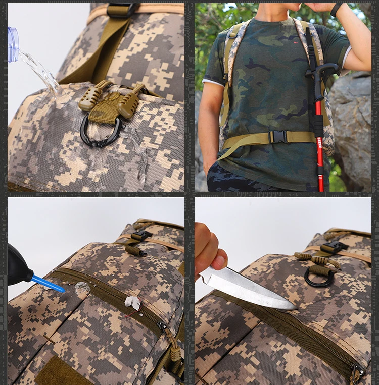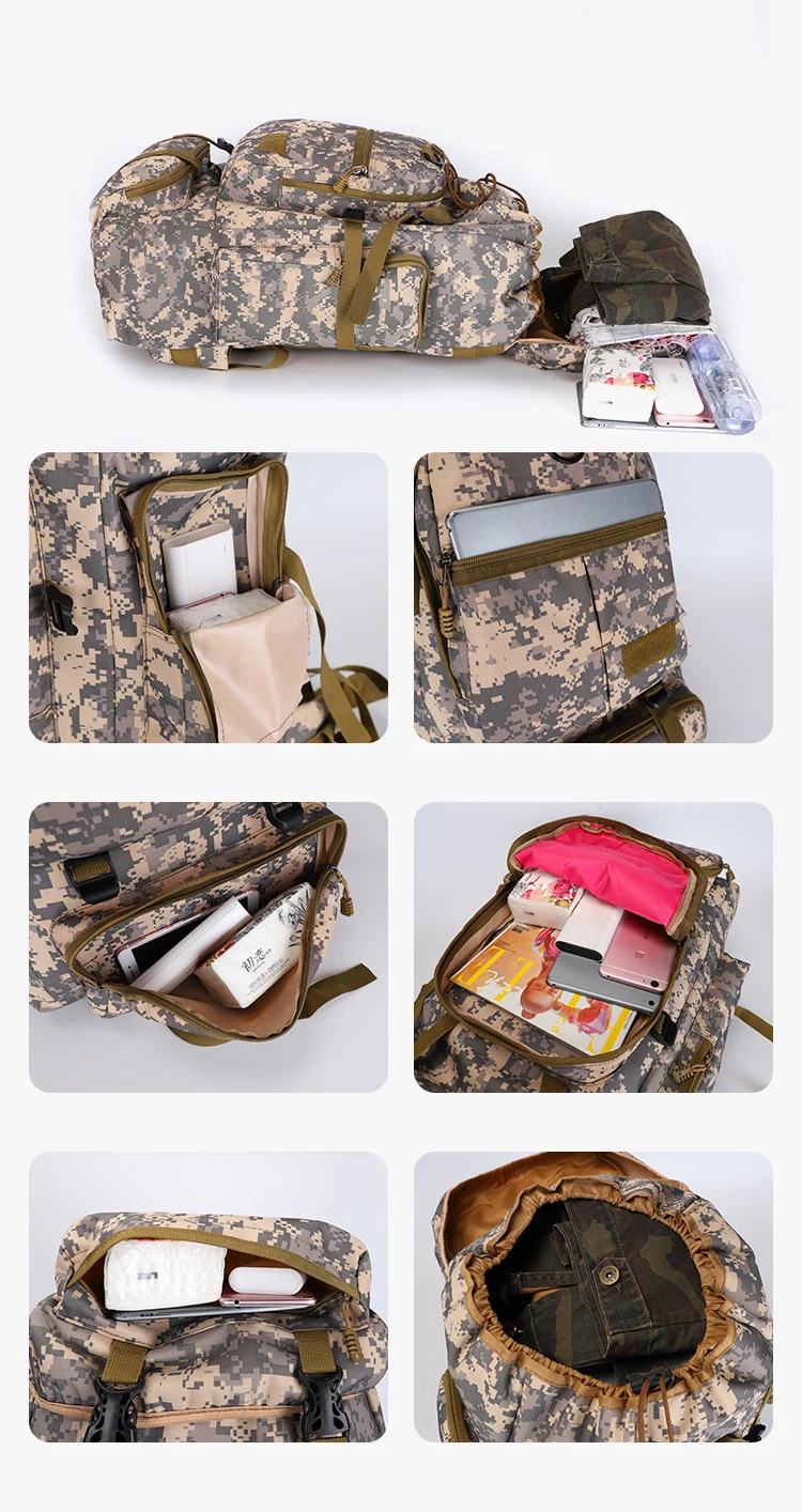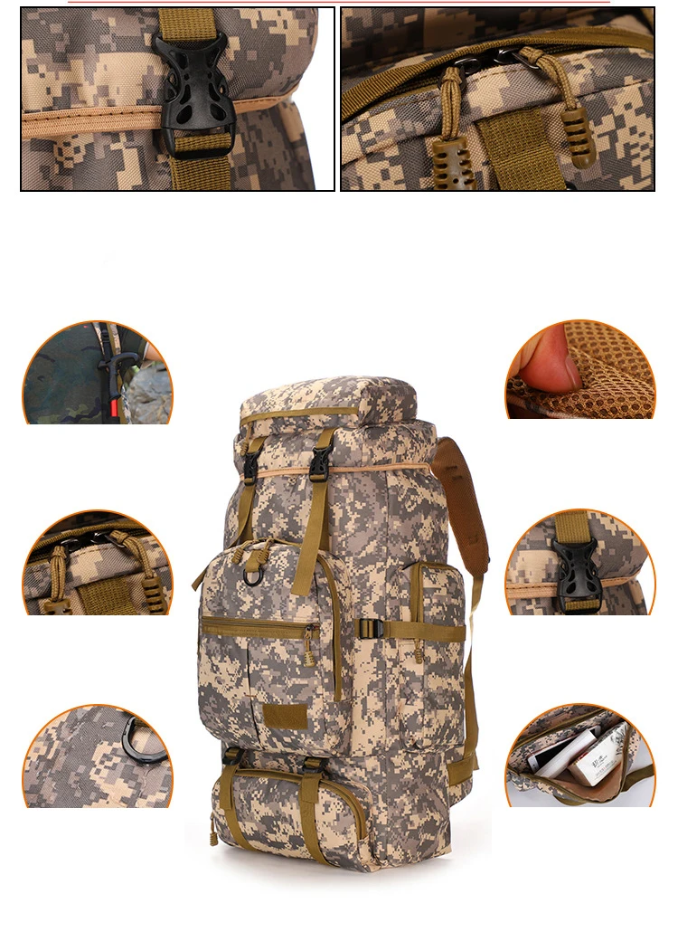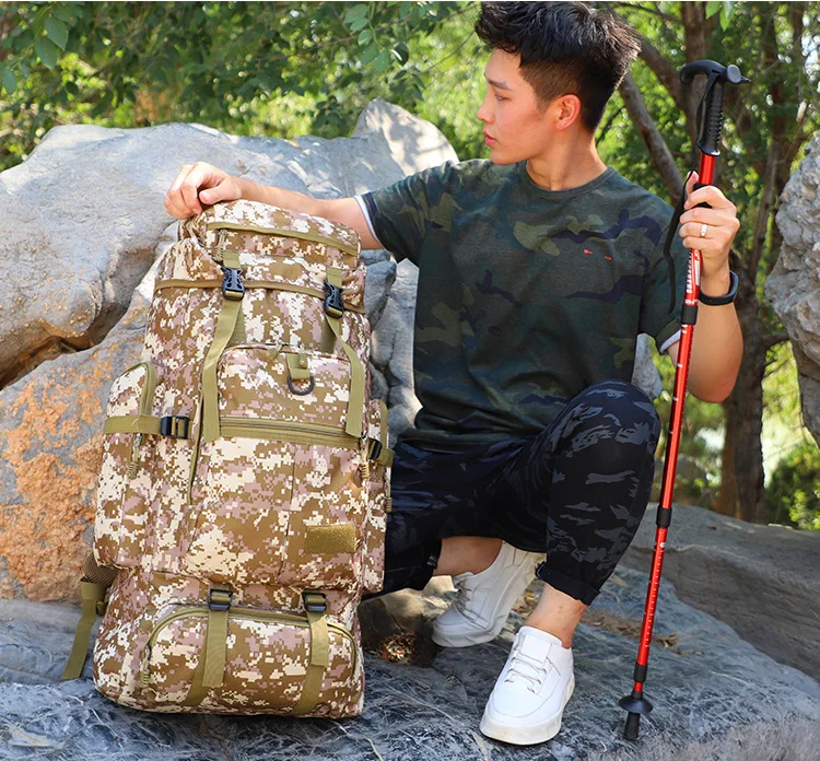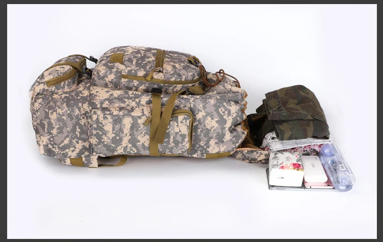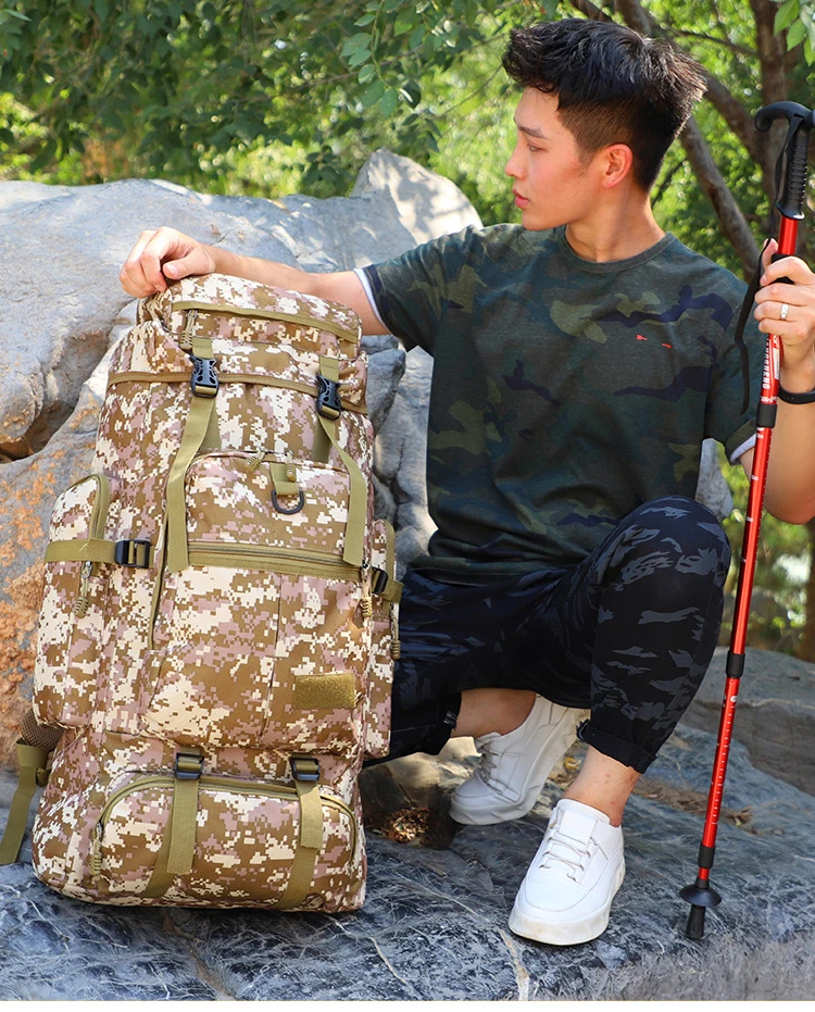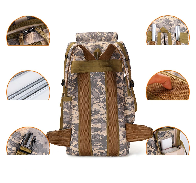Mochila de camuflaje multifunción para hombre, bolsa de alta capacidad, 65 + 10l, impermeable, táctica, ideal para acampar al aire libre