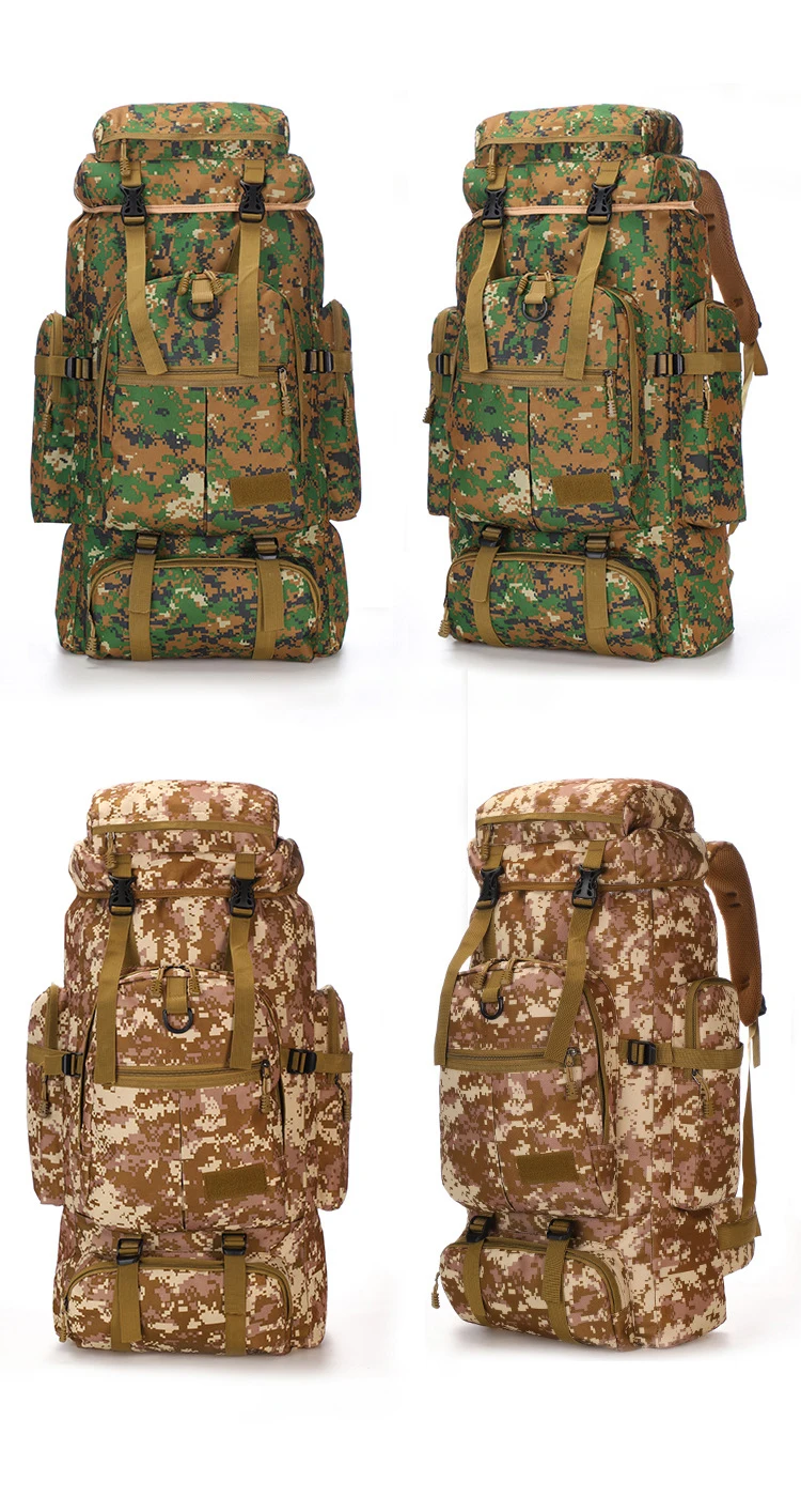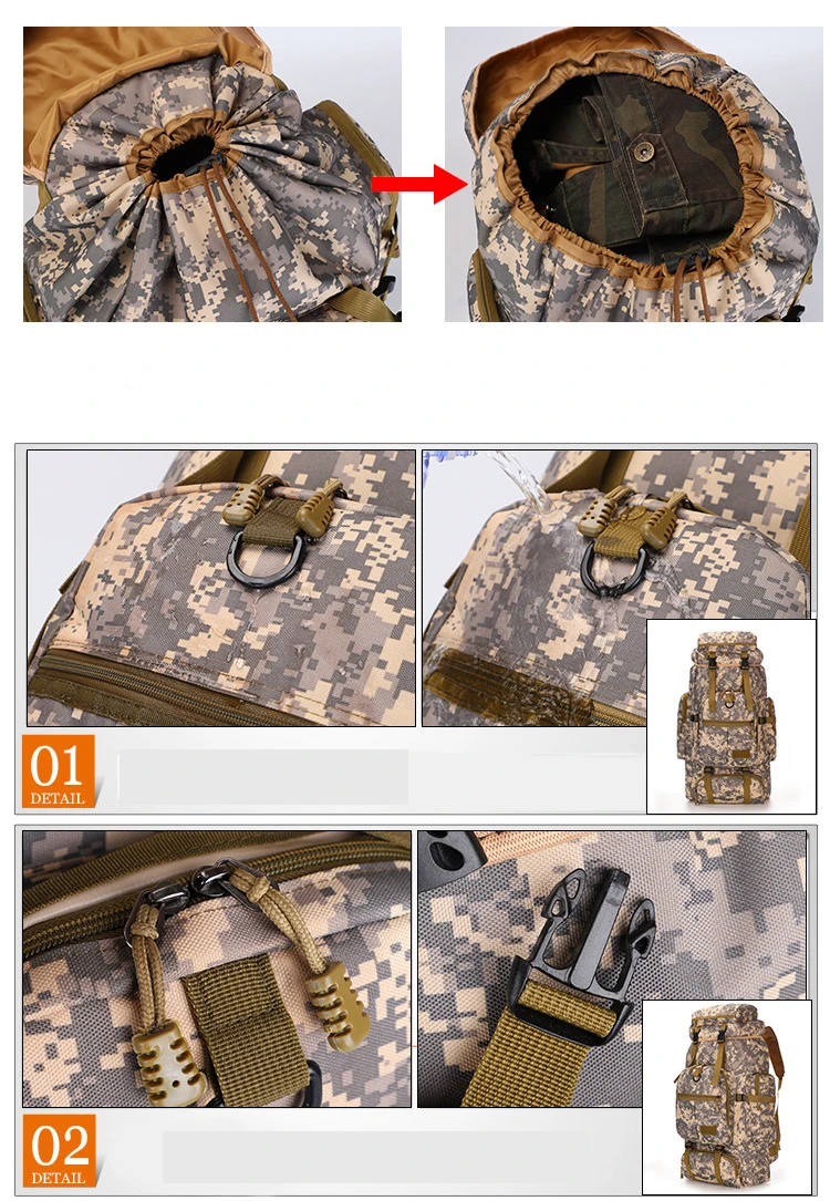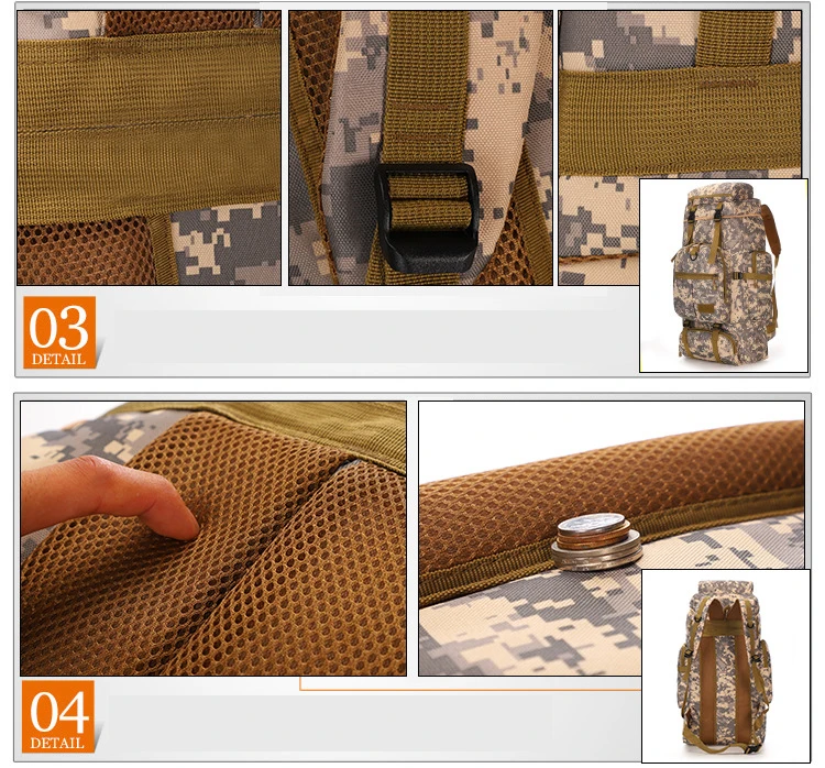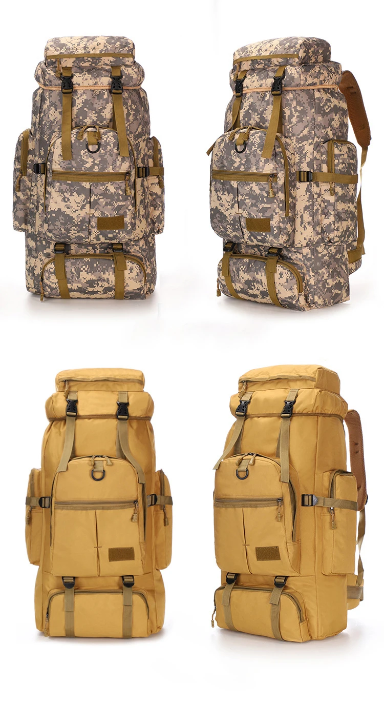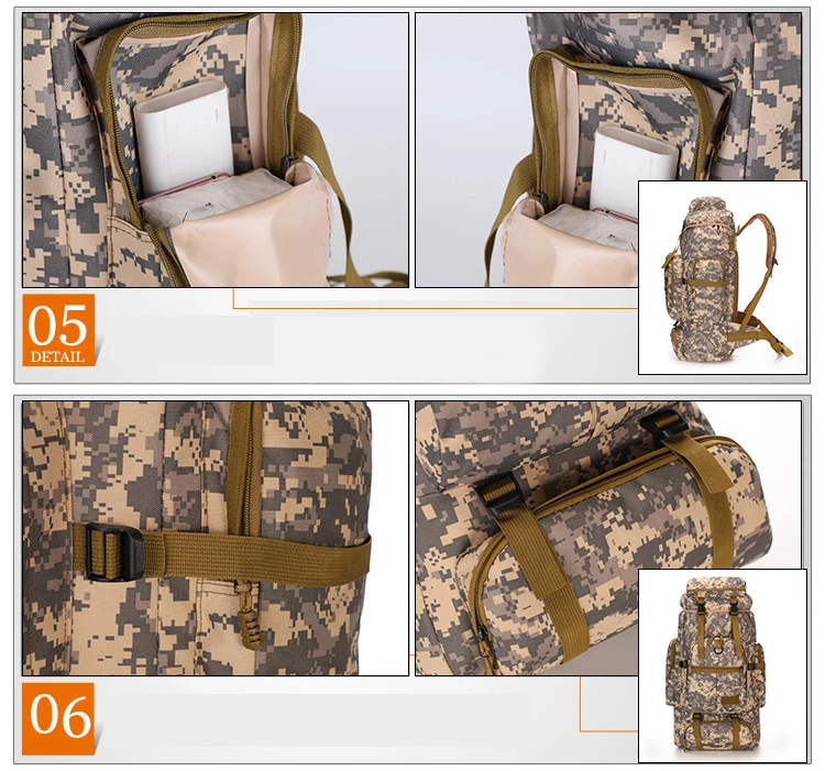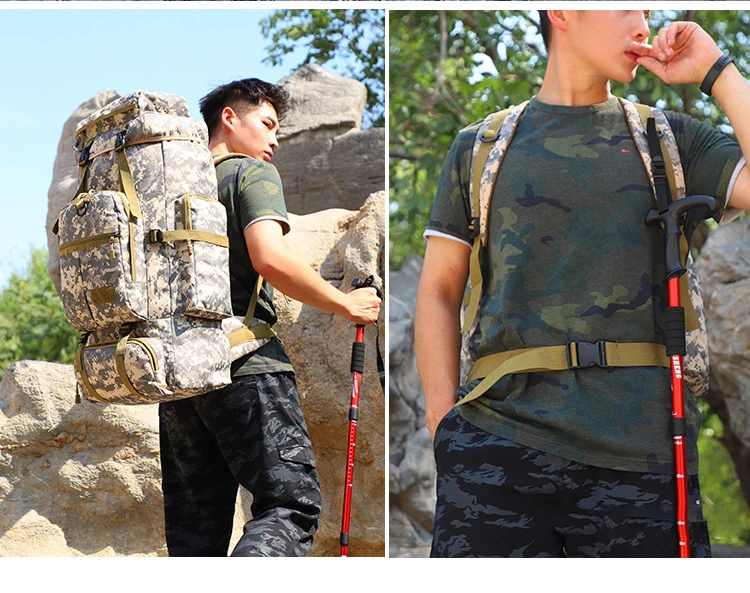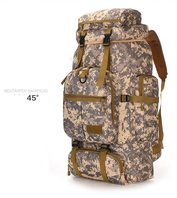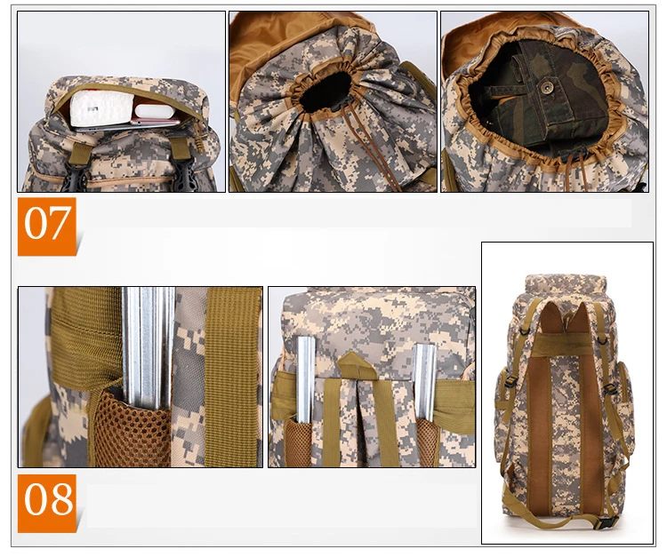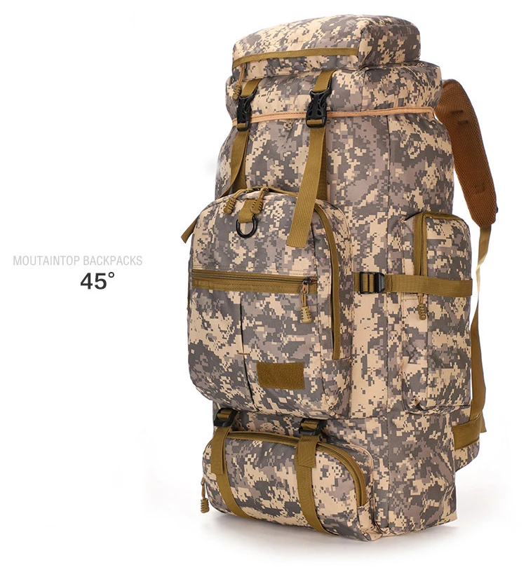 Mochila de camuflaje multifunción para hombre, bolsa de alta capacidad, 65 + 10l, impermeable, táctica, ideal para acampar al aire libre