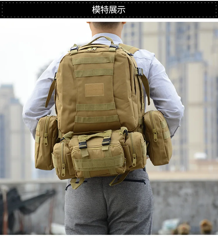 Mochila de caza de 55L 4 en 1, paquete deportivo Molle para exteriores para hombre, mochila de lona de camuflaje para senderismo al aire libre, paquete de ataque impermeable Mochira