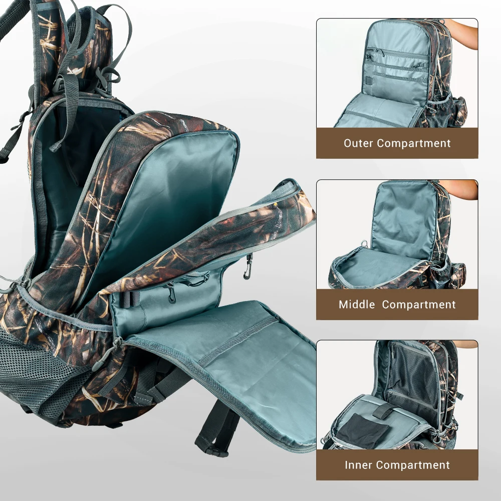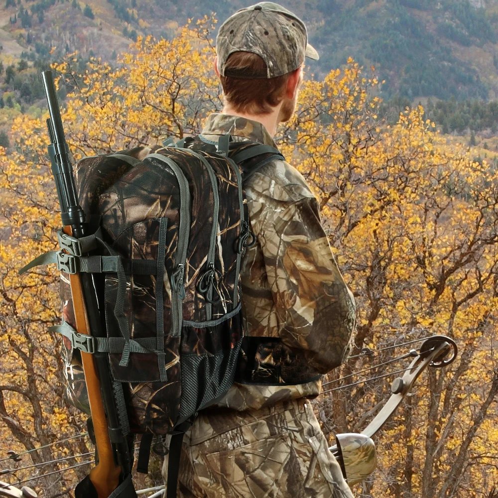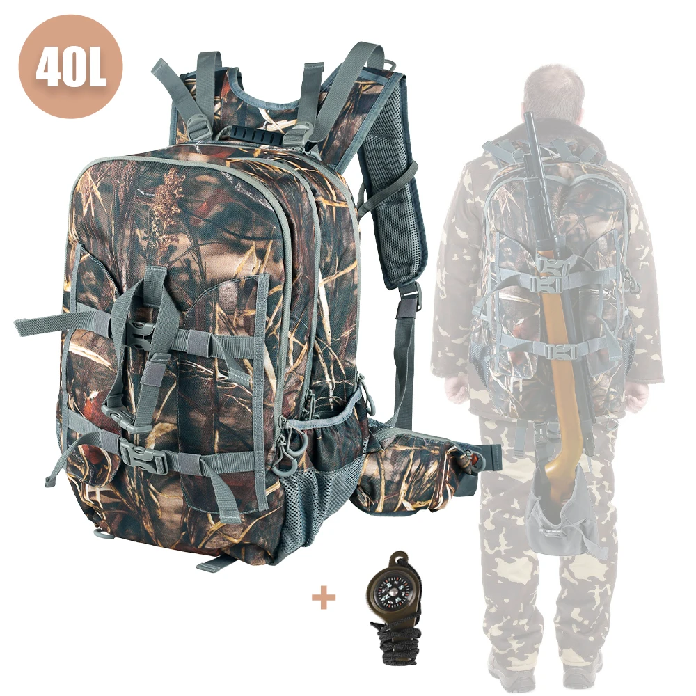 Mochila de caza de gran capacidad de 40L con soporte para rifle, paquete de día al aire libre, bolsa de camuflaje, bolsa de arco compuesto impermeable para tiro