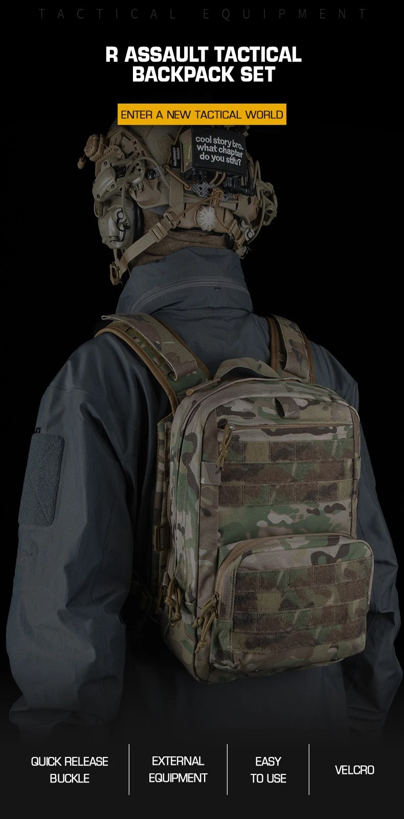 Mochila de caza transpirable para exteriores, conjunto de mochila táctica de asalto R, correa de hombro ajustable, mochila multifuncional DIY