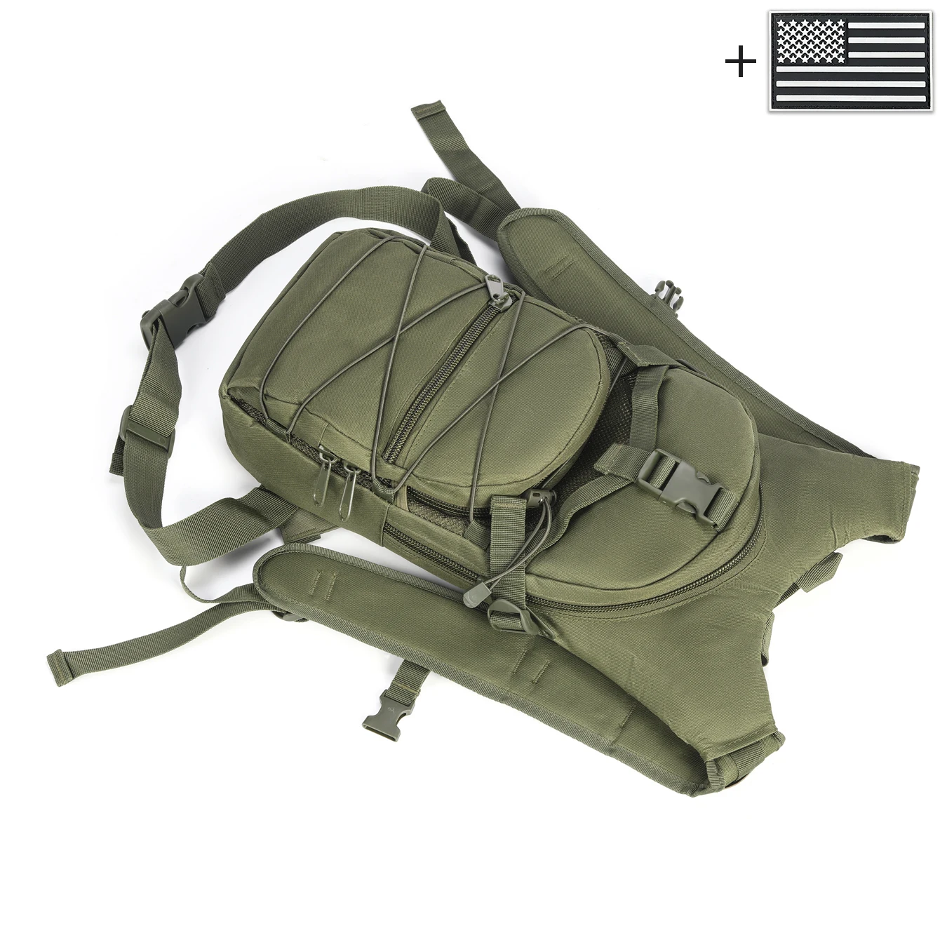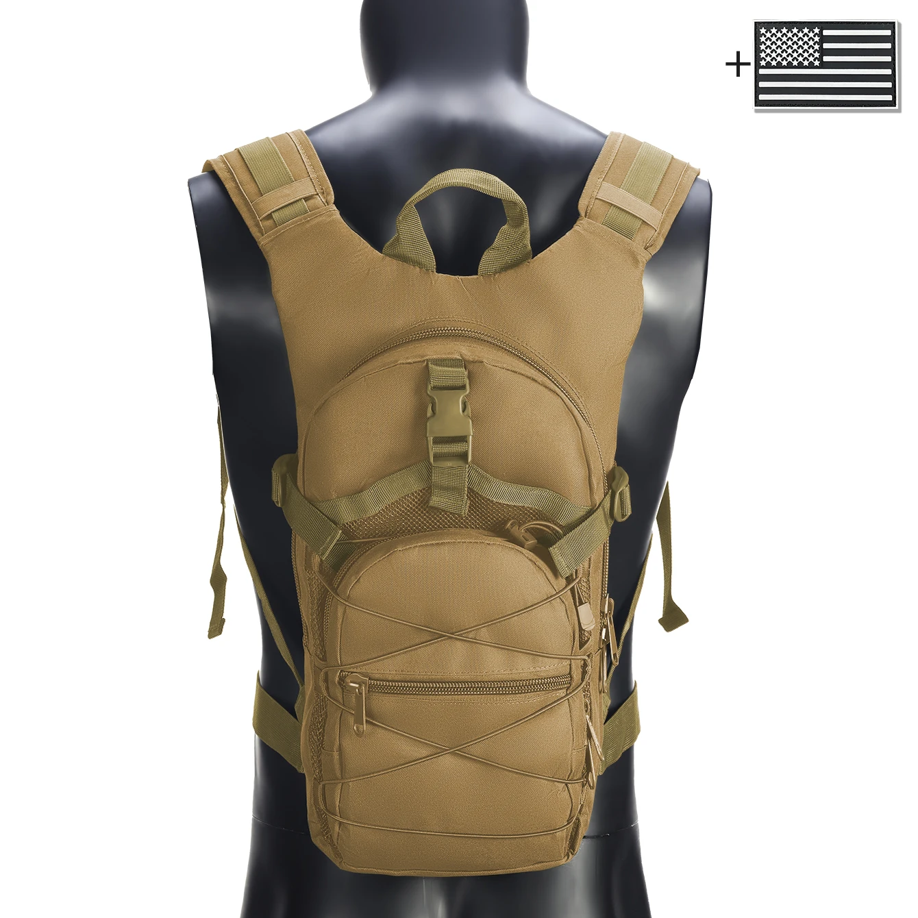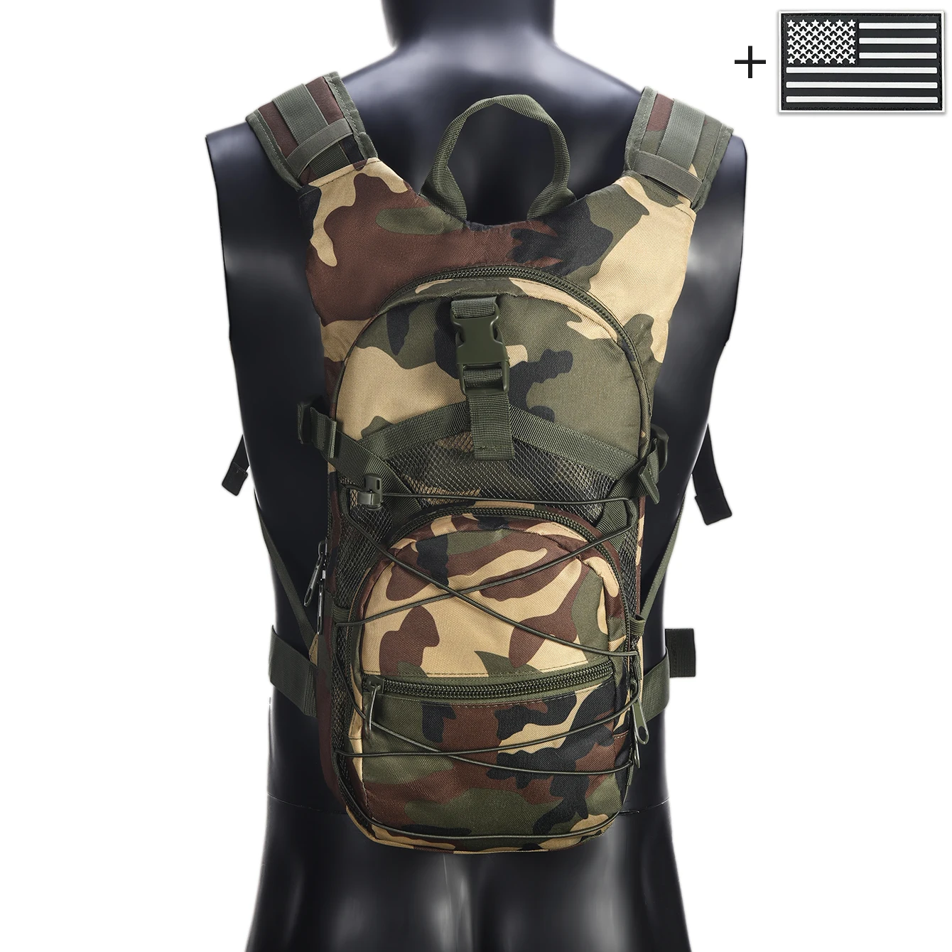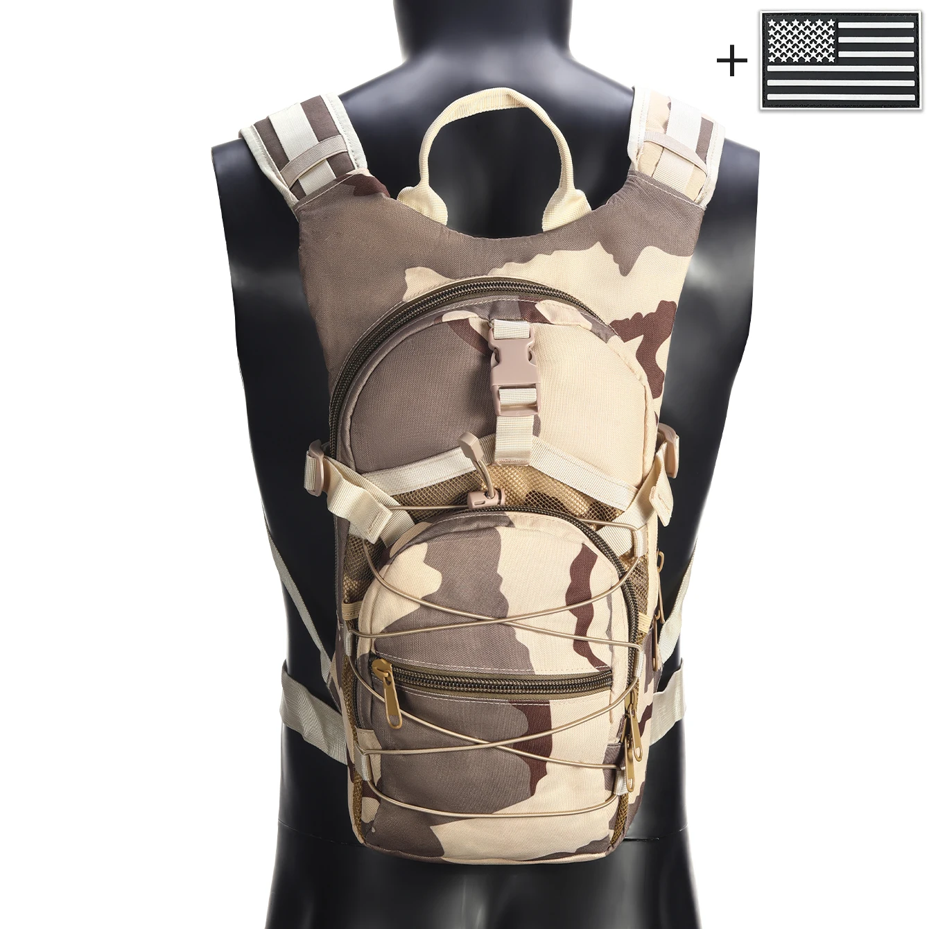 Mochila con correas elásticas y hebillas, bolsillos multicapa confeccionados en materiales duraderos adecuados para ambientes exteriores.