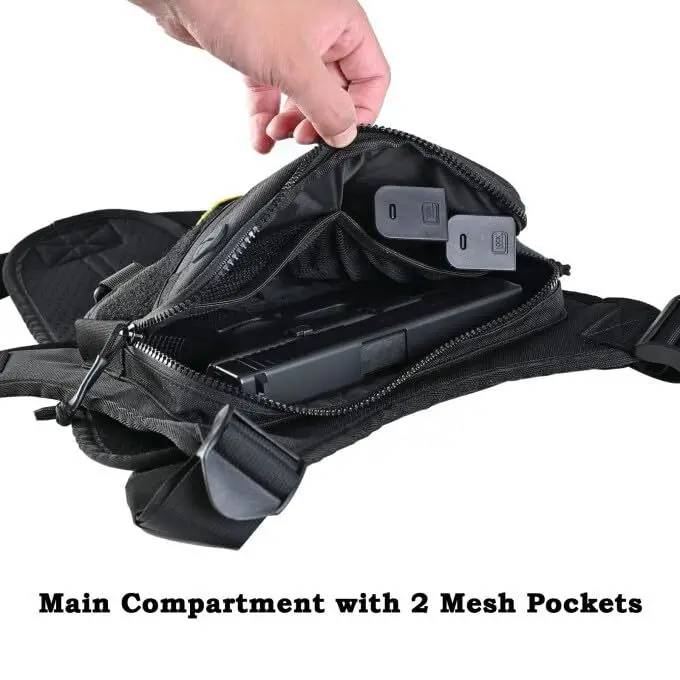 4La mochila de entrenamiento para el pecho tiene correas no elásticas y una longitud de correa para el hombro ajustable de 12 pulgadas (hasta 35 pulgadas con hebilla), lo que la hace adecuada para la mayoría de las personas.También cuenta con 4 bucles elásticos organizadores.