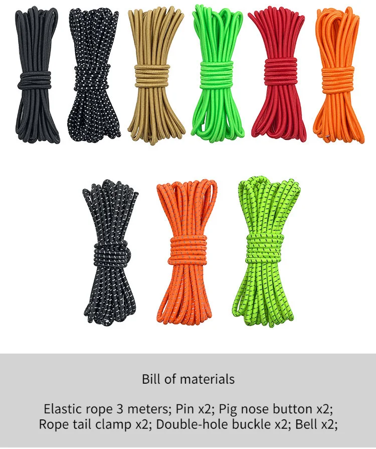 Mochila de cuerda elástica para bolsa de senderismo, hebilla de resorte, cuerda de extensión reflectante, hebilla de sujeción