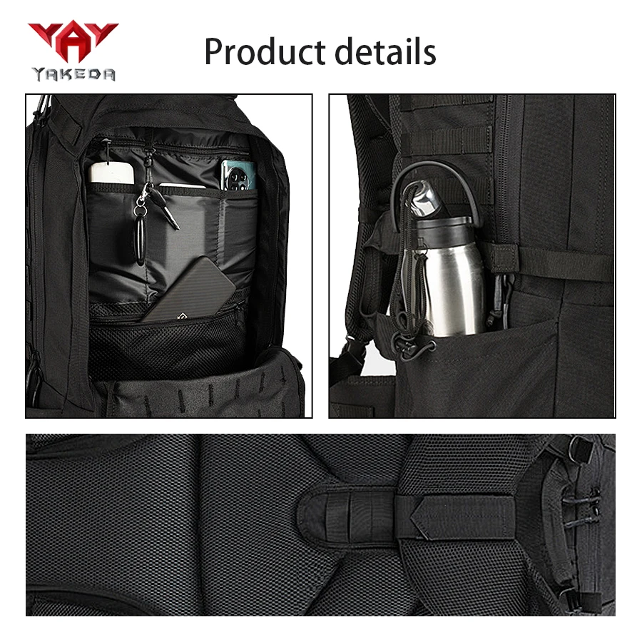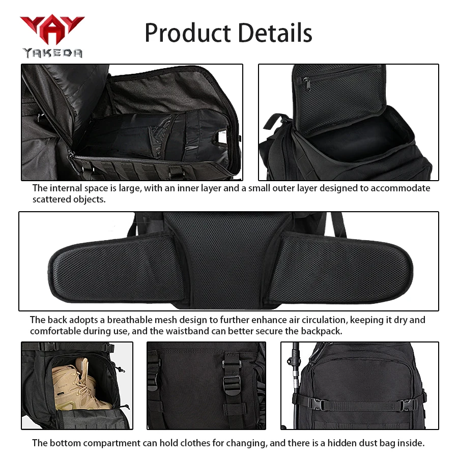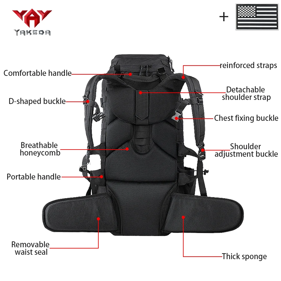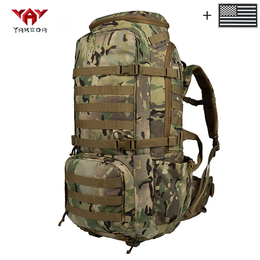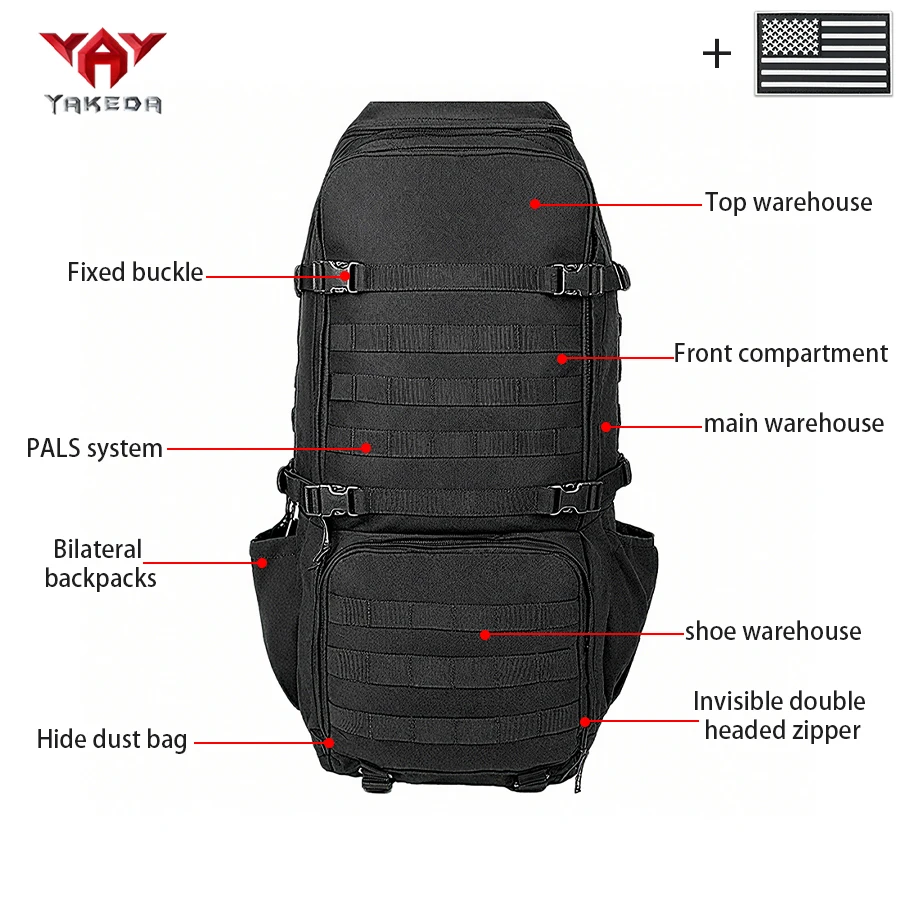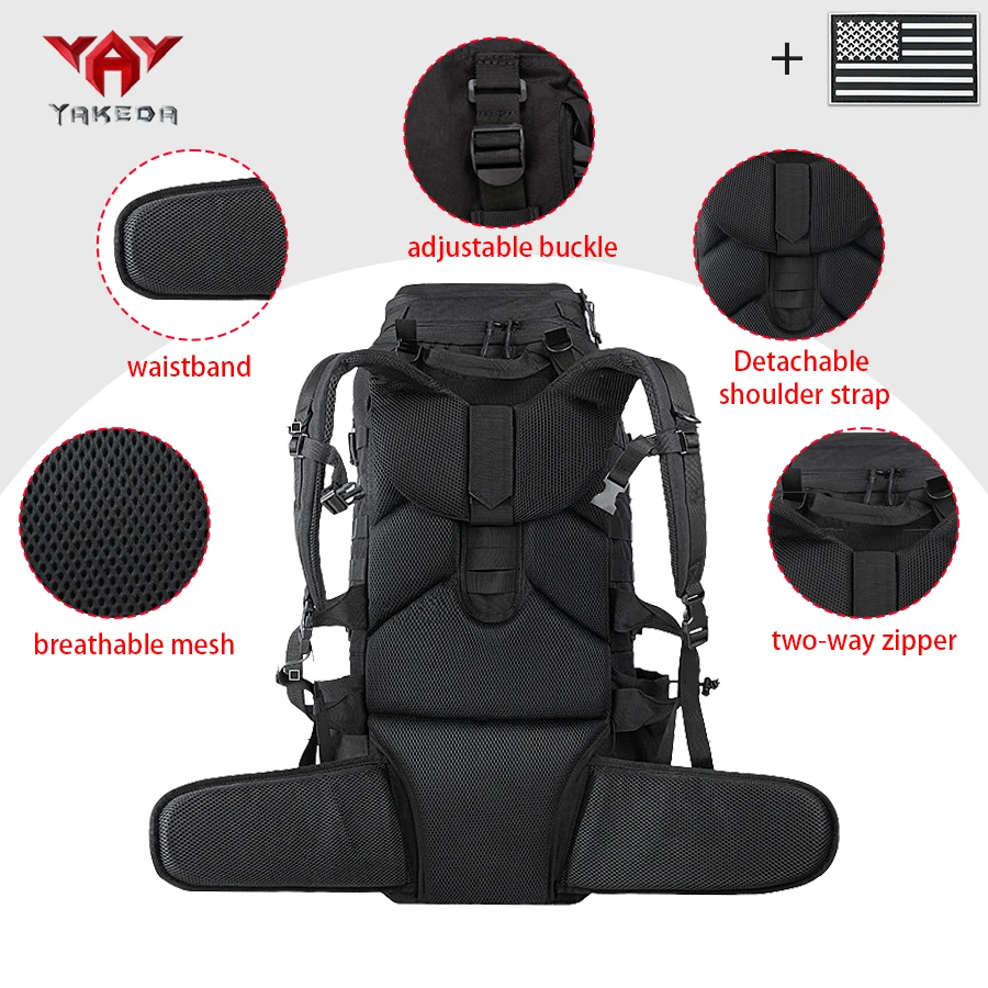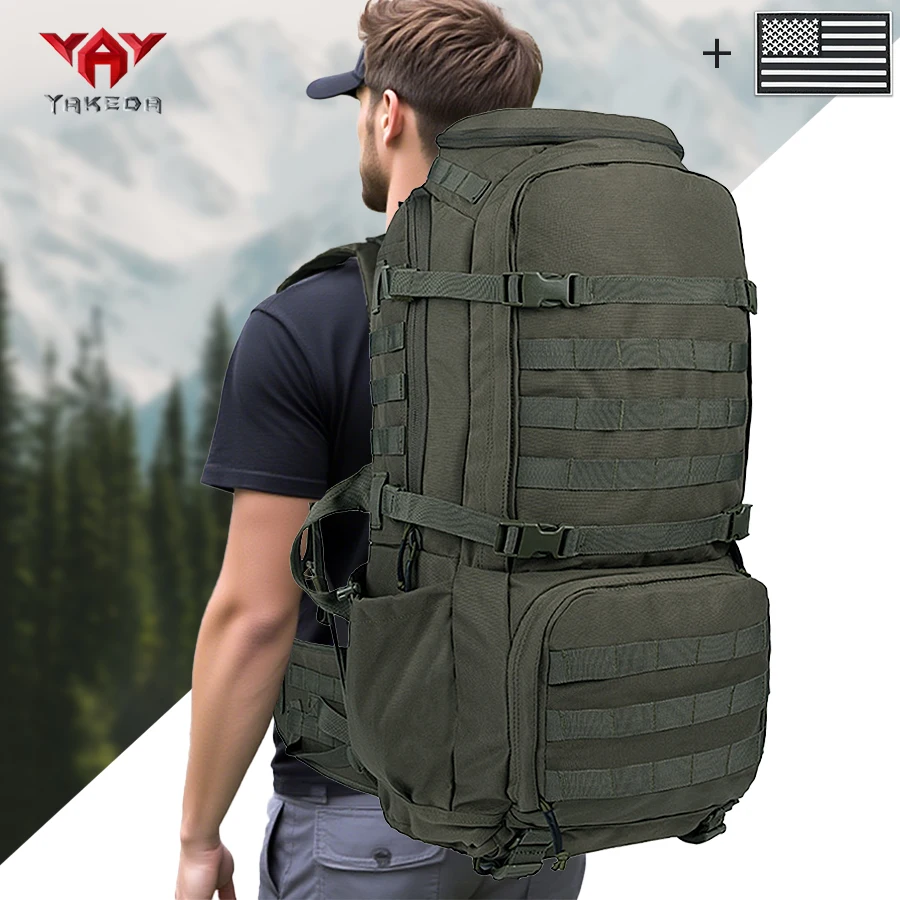 Mochila para deportes al aire libre de gran capacidad YAKEDA de 70L con múltiples capas de bolsillos hecha de compañero resistente al desgaste y al desgarro