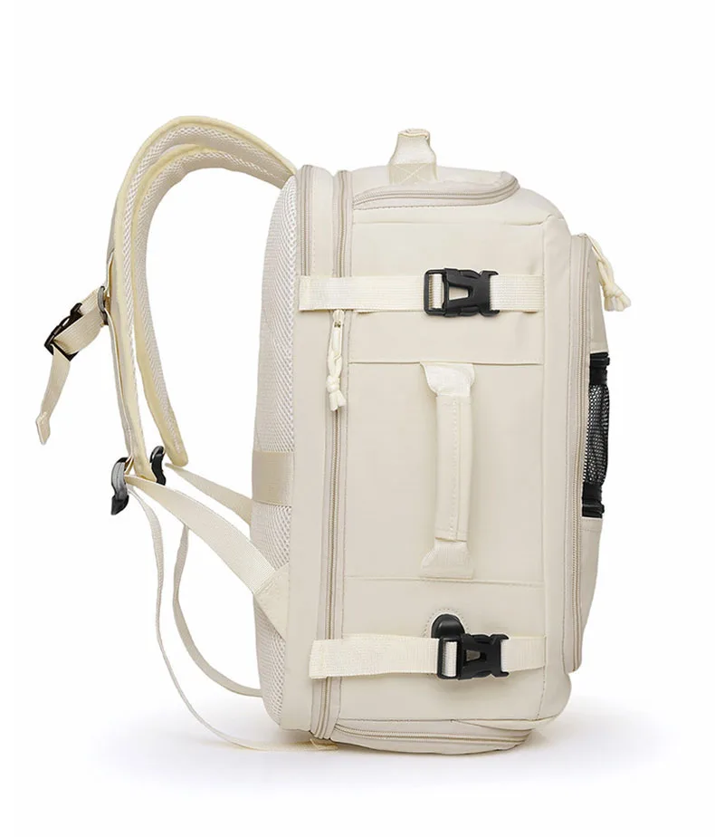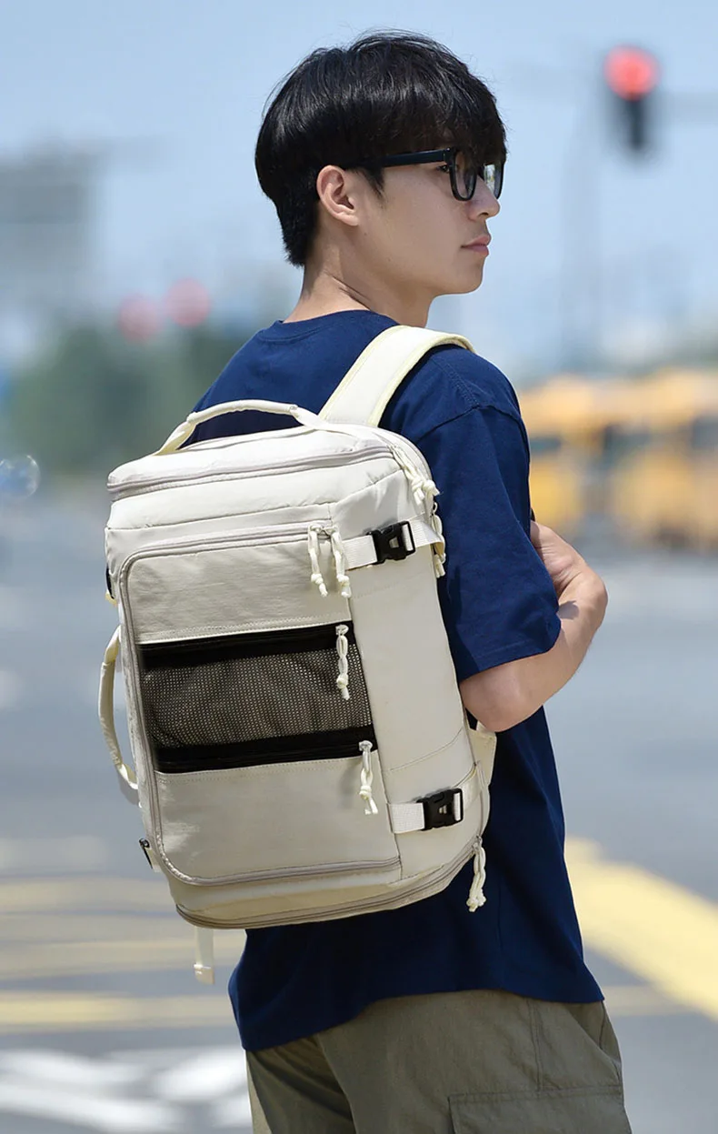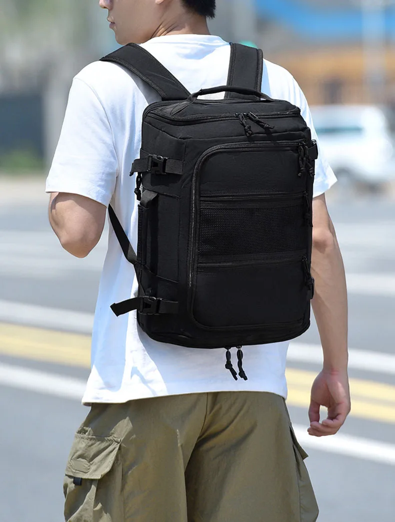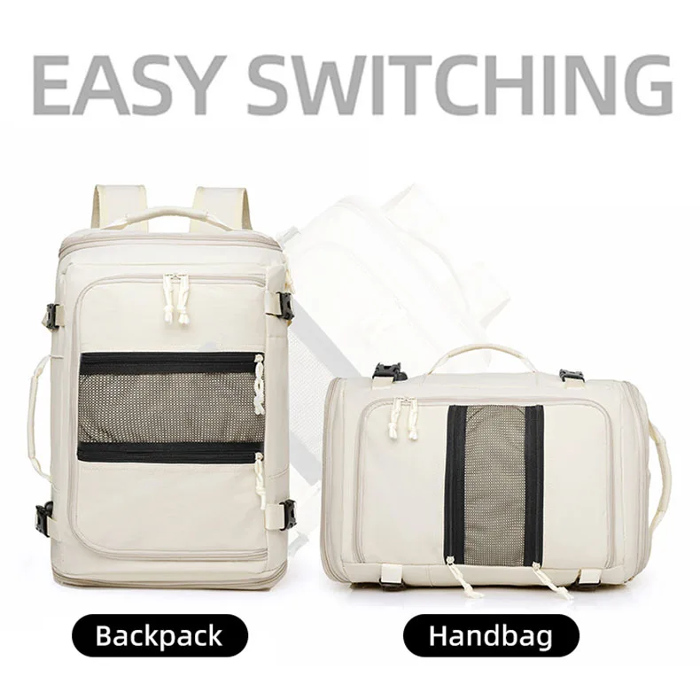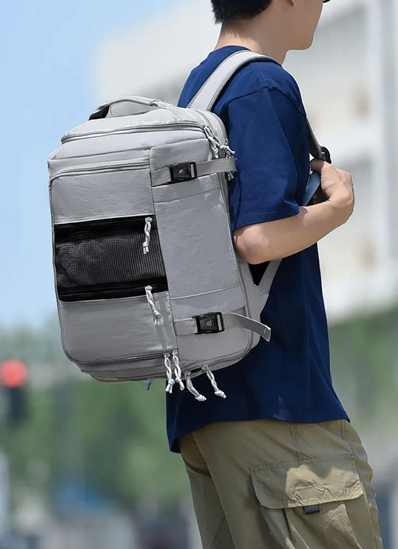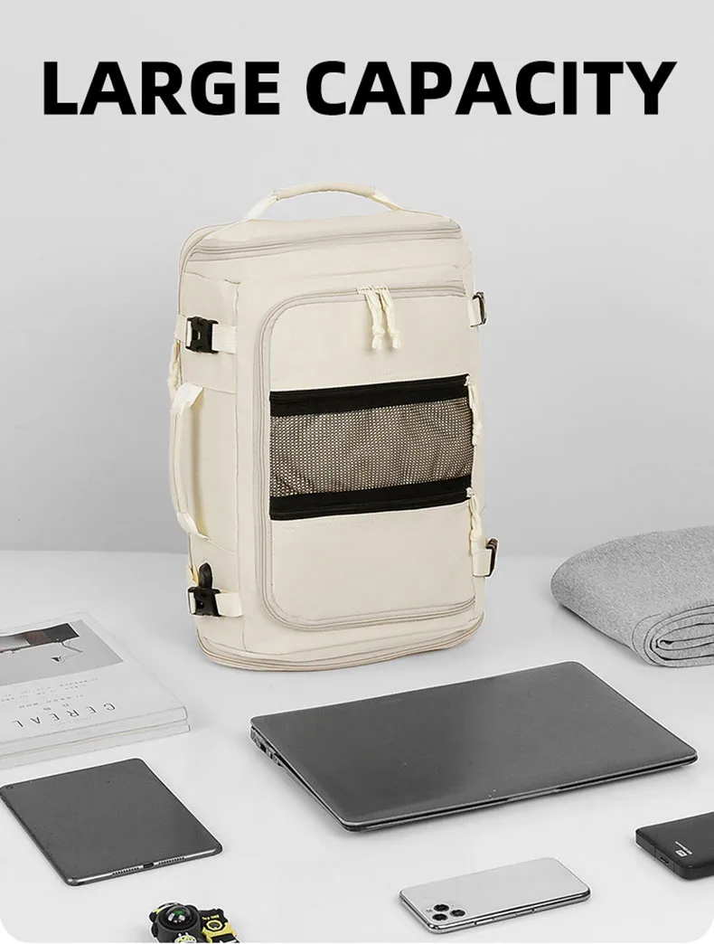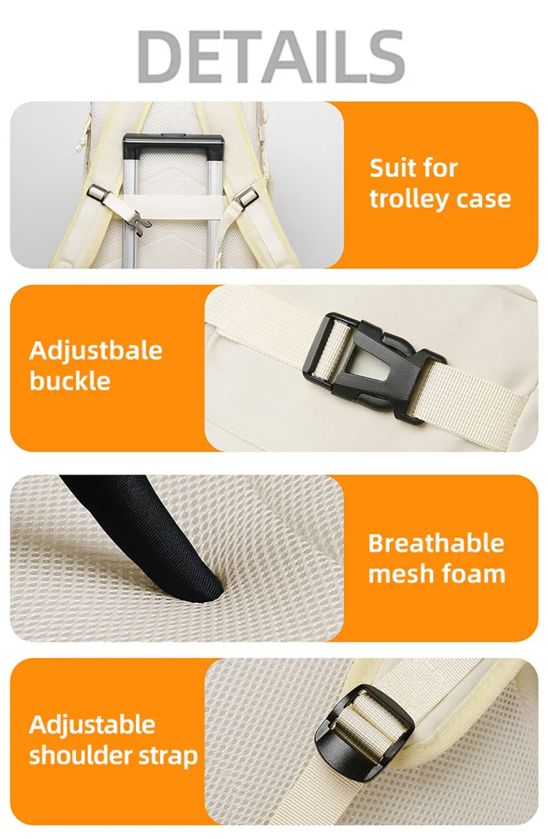 1.Bolsillo principal de gran capacidad, la boca de la bolsa se puede abrir 180°, bolsillo de malla con cremallera incorporado, el cuerpo de la bolsa configura bolsillos secundarios con cremallera, con compartimento separado para zapatos y compartimento para computadora.Fácil acceso y almacenamiento.