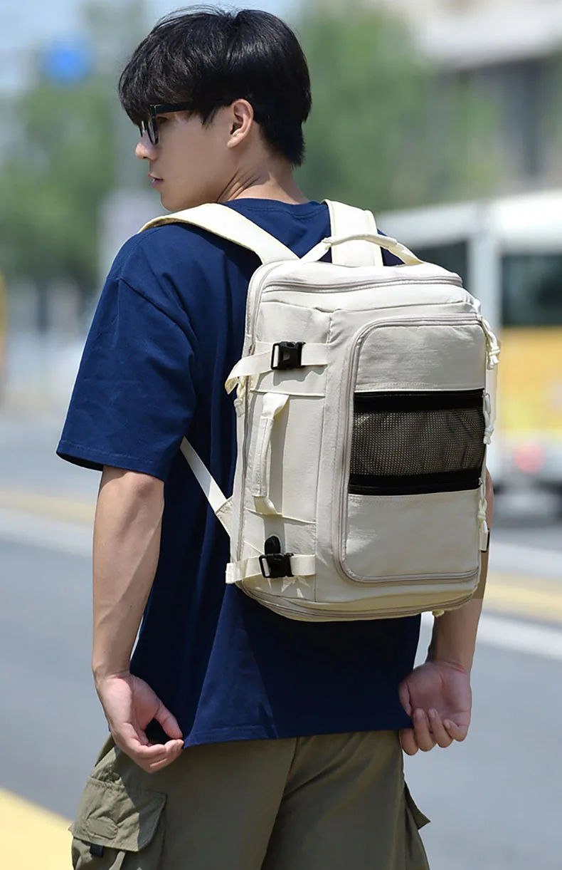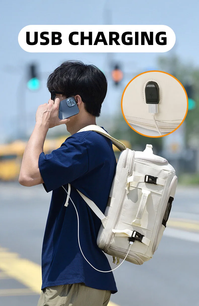 Mochila deportiva USB para gimnasio, bolsa de equipaje grande expandible para ordenador portátil de negocios al aire libre, bolsillo para zapatos, bolso seco y húmedo para viajes de acampada