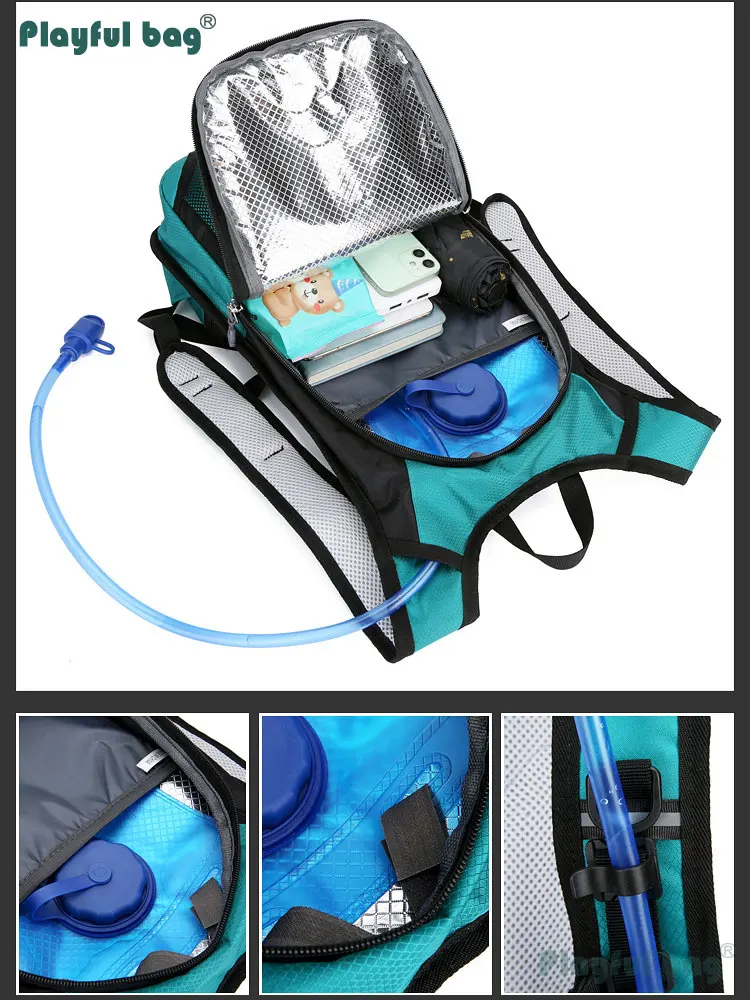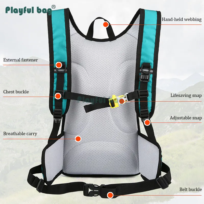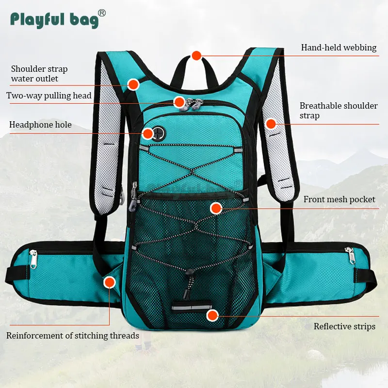 Product size: 46*27*11CMBackpack weight: 0.49kgProduct material: water-repellent nylonWith TPU 2L water bag