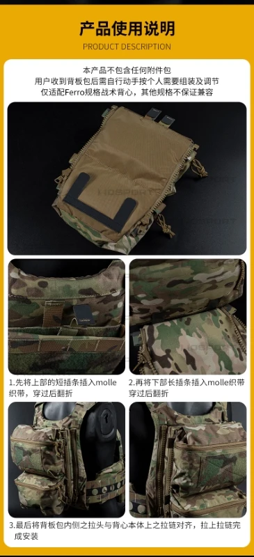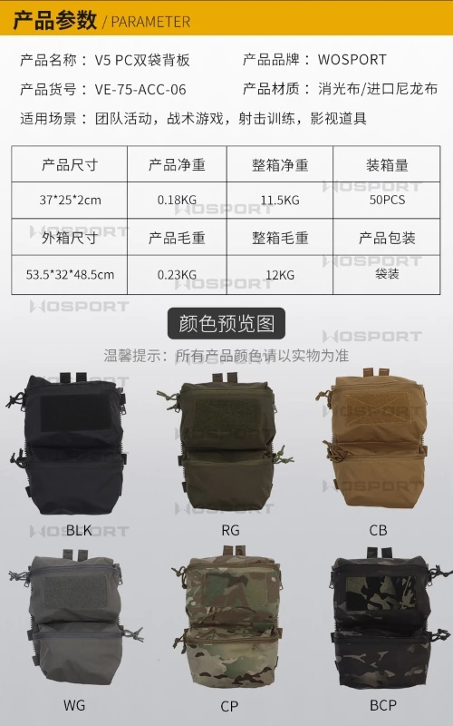 Mochila desmontable de combinación multifuncional, equipo táctico ligero V5 PC, Panel trasero de camuflaje de doble bolsillo
