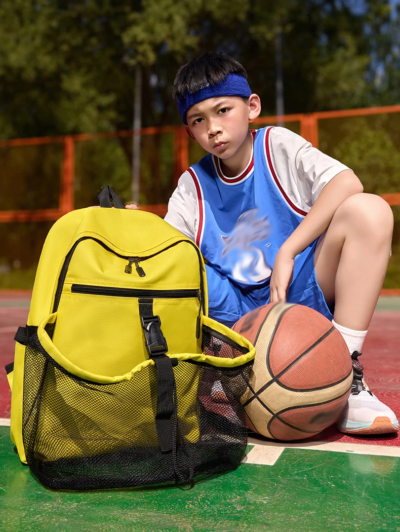1.Bolsa de pelotas independiente: bolsa de red de baloncesto delantera, bolsa elástica con casquillo para un fácil acceso.