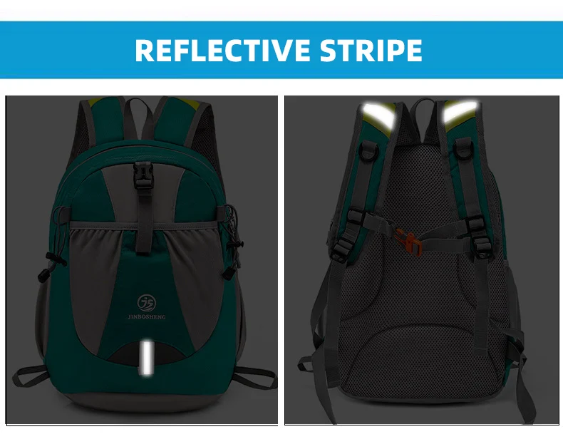 1.Tela impermeable, rayas reflectantes en el cuerpo de la bolsa, práctica cuerda para colgar externa, viaje cómodo y seguro