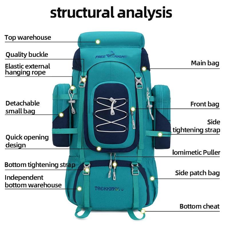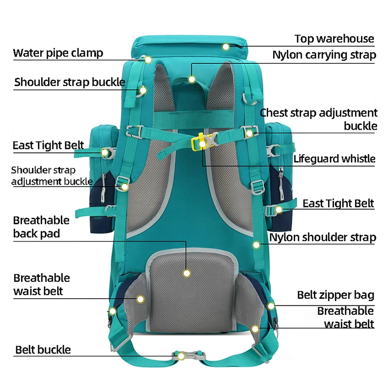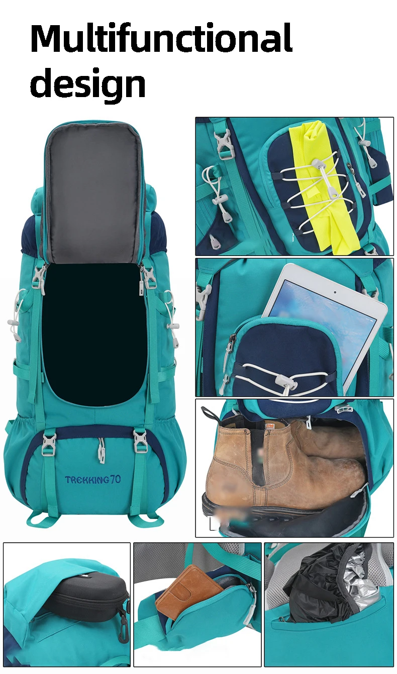 Mochila de escalada al aire libre con cubierta para la lluvia, senderismo, Camping, senderismo, salida, equipaje grande de montañismo, mochila deportiva
