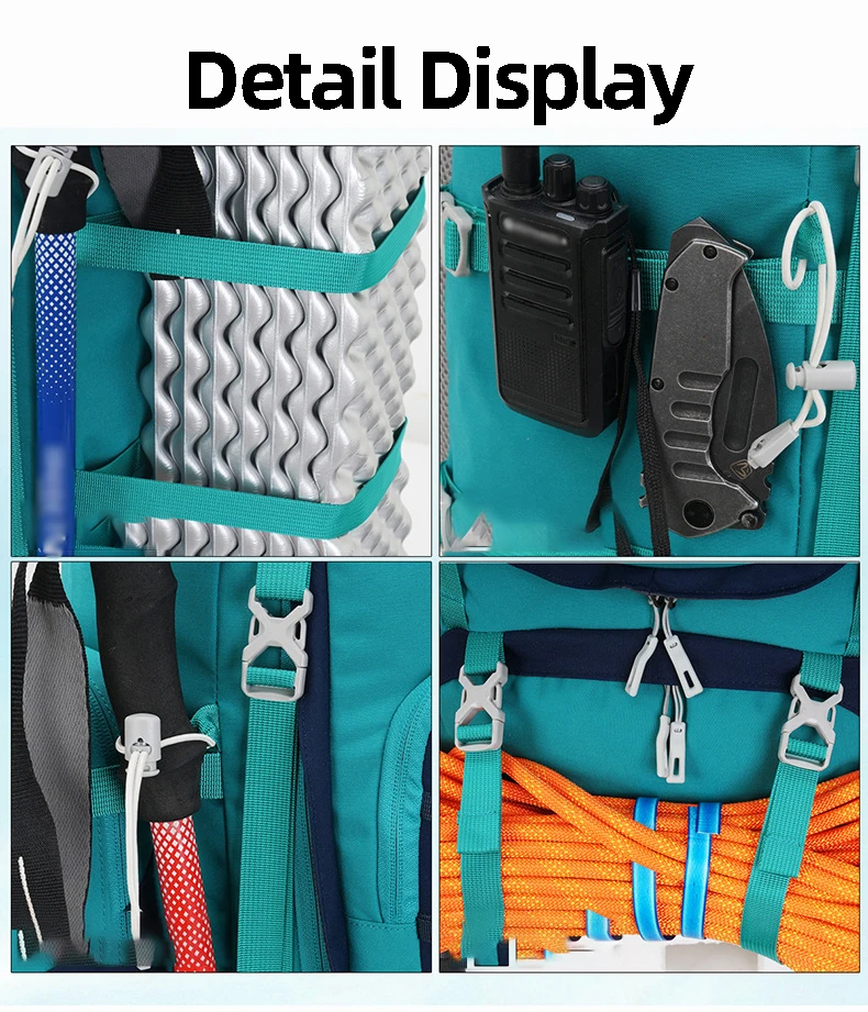 4.Sistema de suspensión multifuncional, puede almacenar bastones de senderismo.