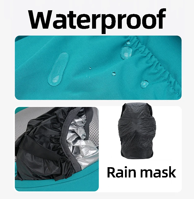 7.La mochila se entrega con una funda para la lluvia y una bolsa de almacenamiento con funda para la lluvia en la parte inferior de la bolsa, lo que facilita su viaje.