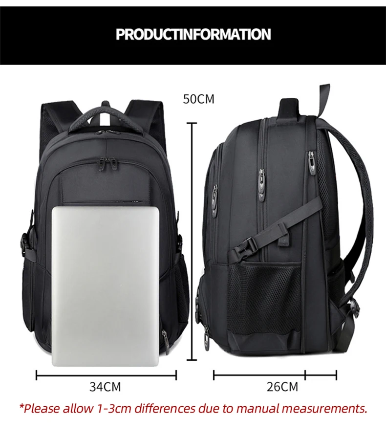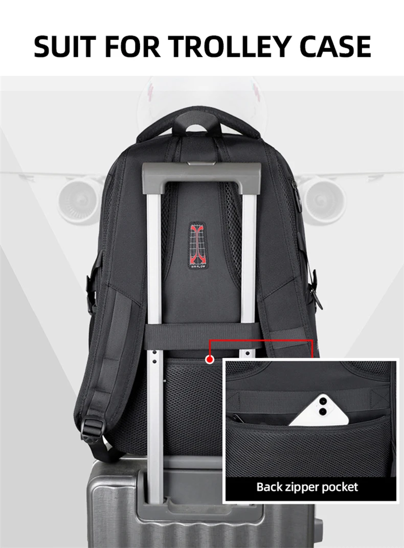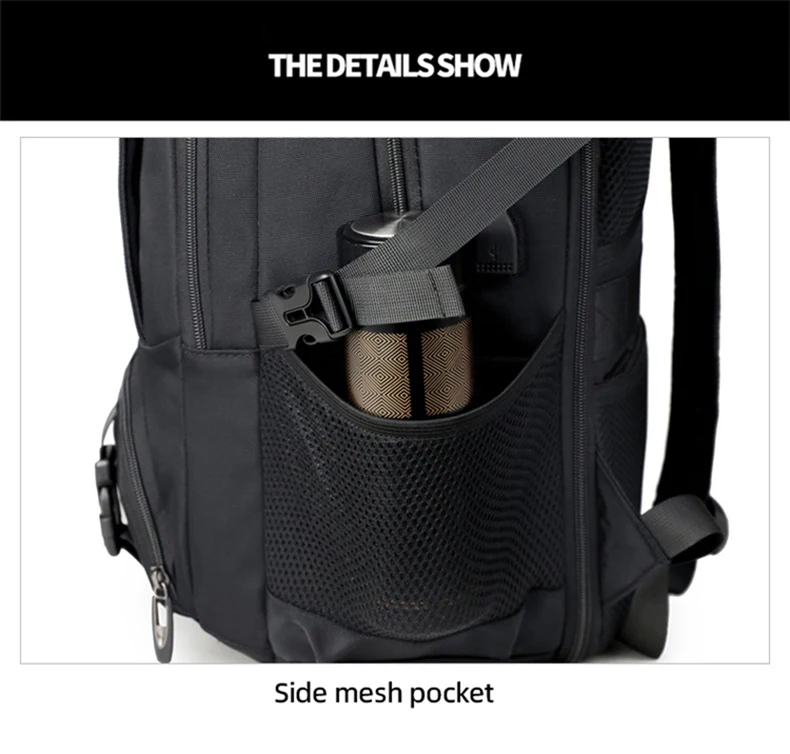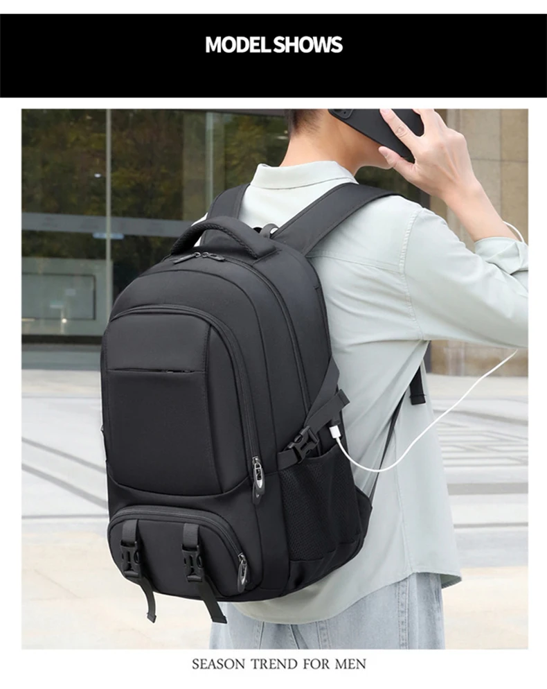 1.Juego de bolsa principal de gran capacidad, compartimento para computadora incorporado, diseño de bolsa con múltiples combinaciones, el cuerpo de la bolsa se puede expandir en la mochila, apertura con cremallera de expansión trasera, el cuerpo de la bolsa se puede ampliar 6 cm, con un compartimento para zapatos independiente, almacenamiento de viaje más conveniente.