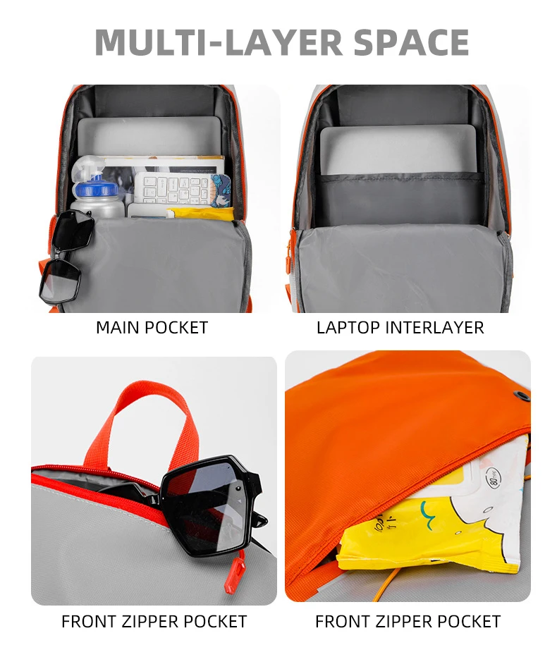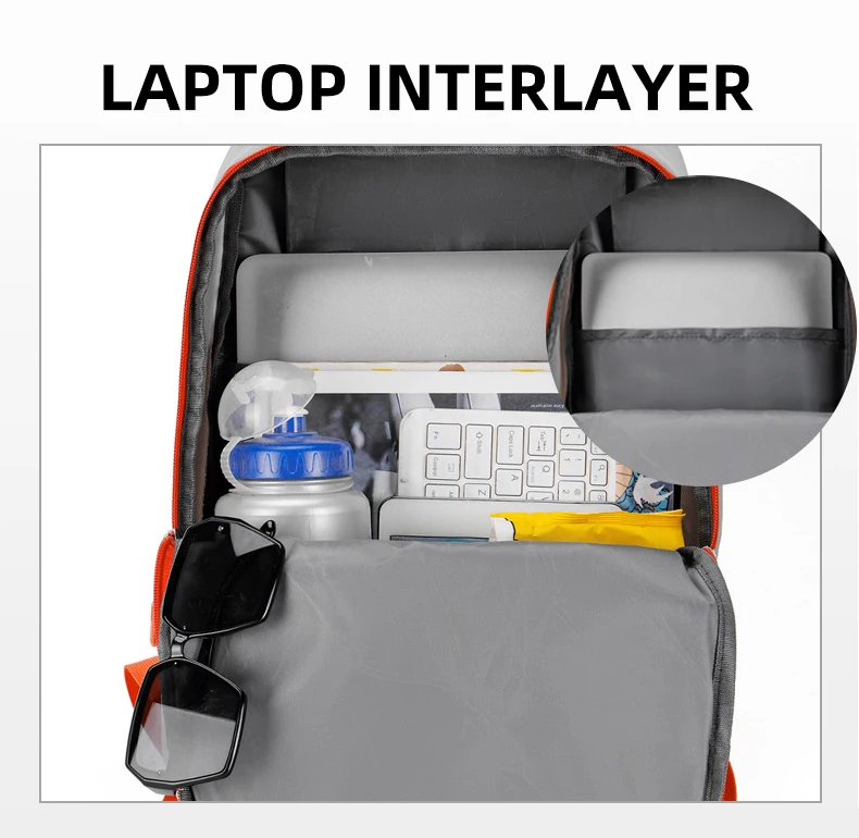 4.Diseño reflectante: tiras reflectantes en la parte delantera de la mochila, más seguras para viajar de noche.