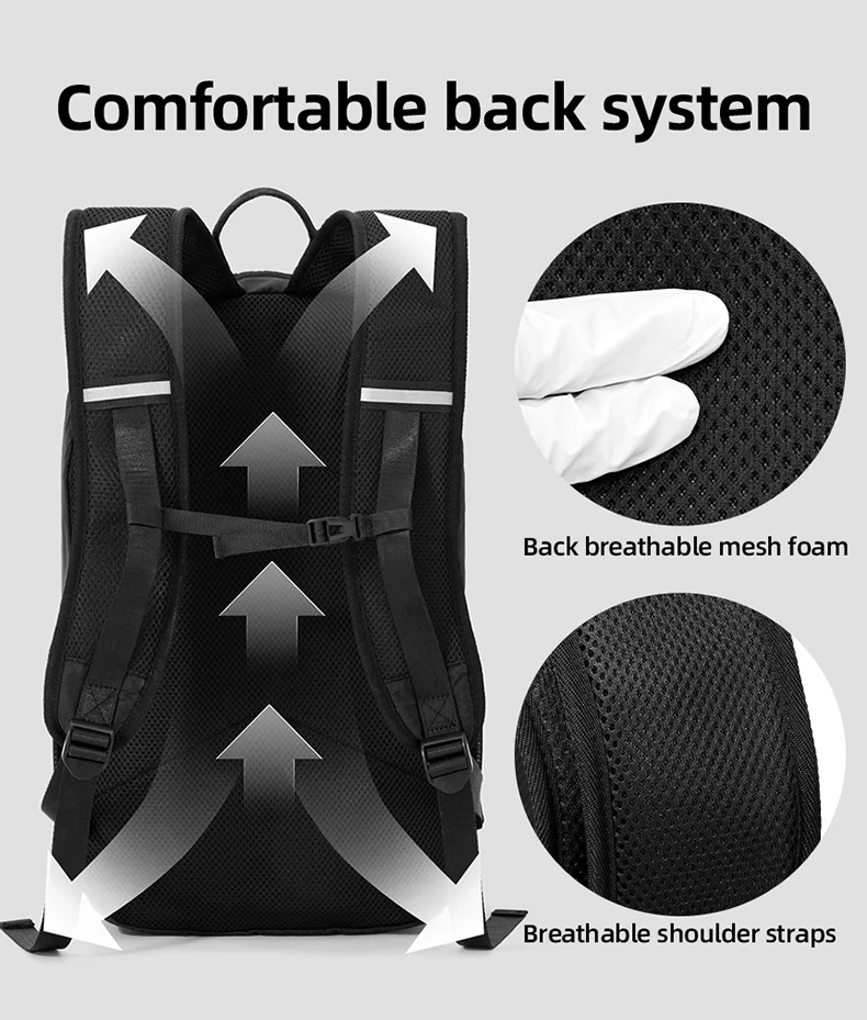 3.Sistema de mochila transpirable: respaldo de malla con compartimento transpirable, que libera calor y suda circularmente.