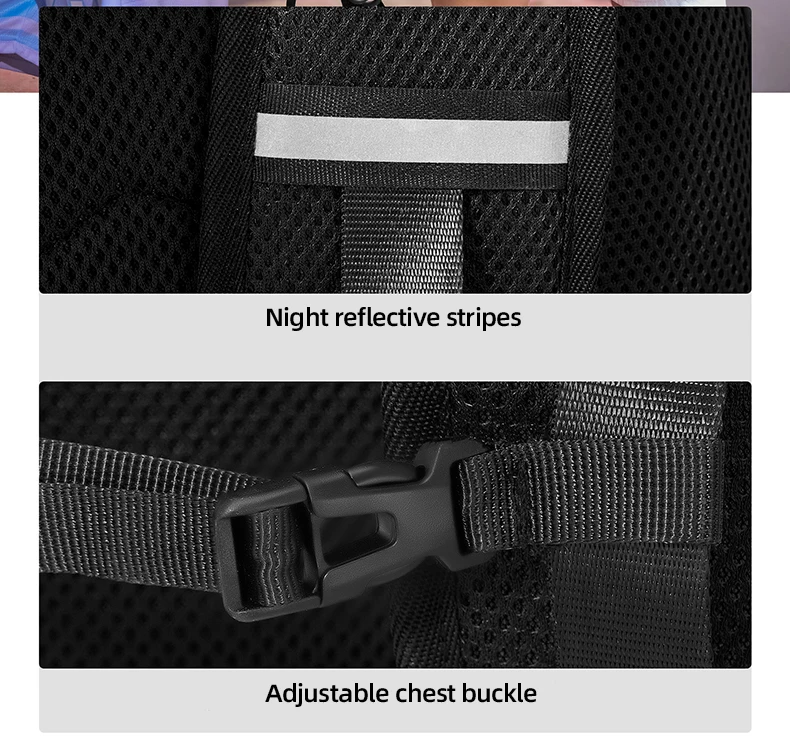 2.Diseño de tira reflectante: el diseño de tira intermitente de la correa para el hombro hace que viajar de noche sea más seguro.