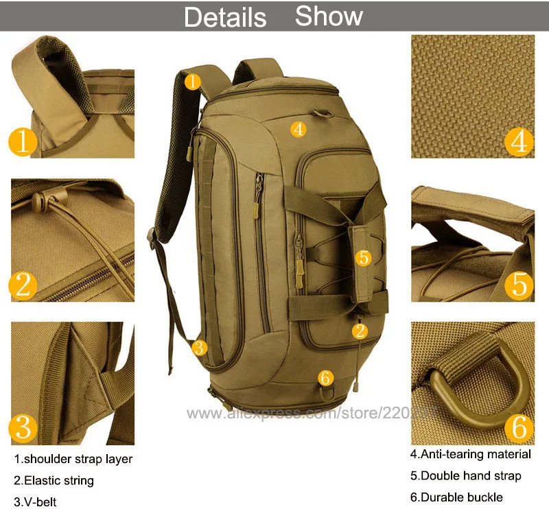 Mochila De gimnasio de 35L y 45L para hombre, morral táctico Molle deportivo de 14 pulgadas para ordenador portátil y cámara, bolso de hombro grande para Fitness