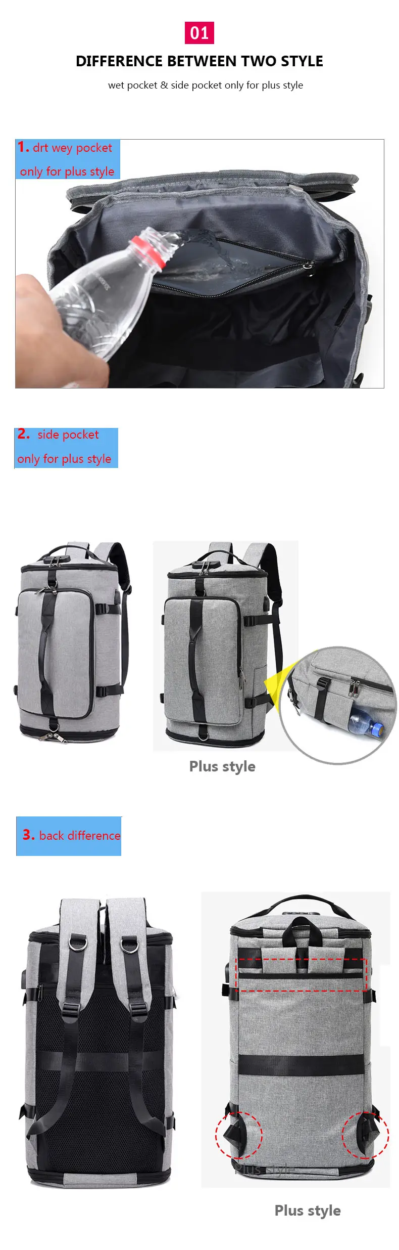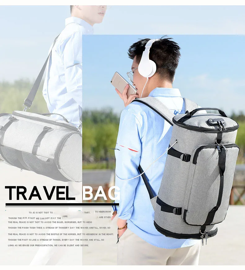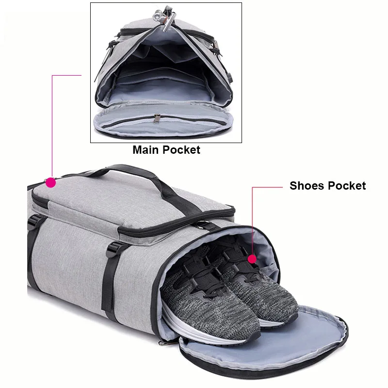Terylene Men Shoulder Sport Gym Bag Multifunctional Tote Fitness Bags For Shoes Storage Anti-Theft Outdoor Travel Backpack