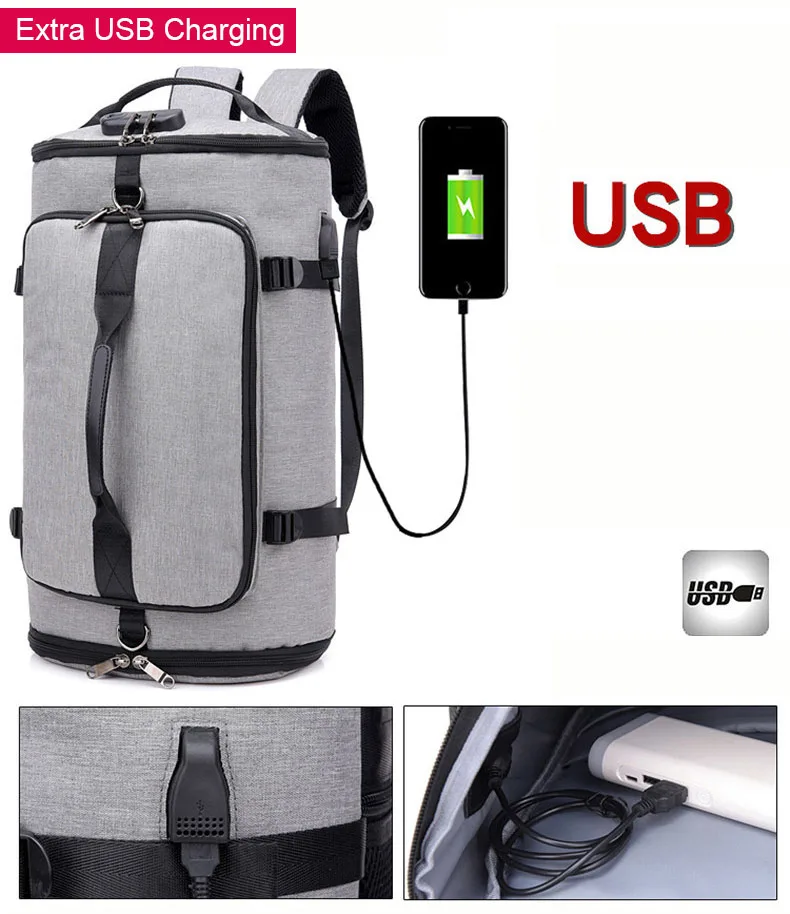 Terileno Hombres Hombro Deporte Gimnasio Bolsa Multifuncional Tote Fitness Bolsas Para Zapatos Almacenamiento Antirrobo Mochila de Viaje al Aire Libre