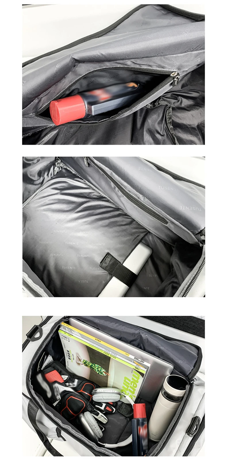 2. With separate shoe compartment and wet/dry separator pocket