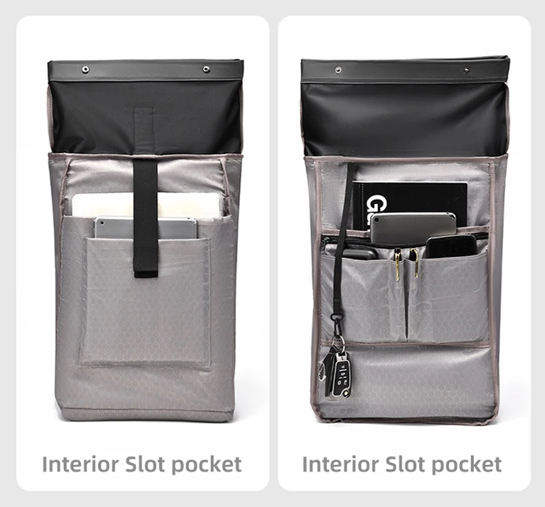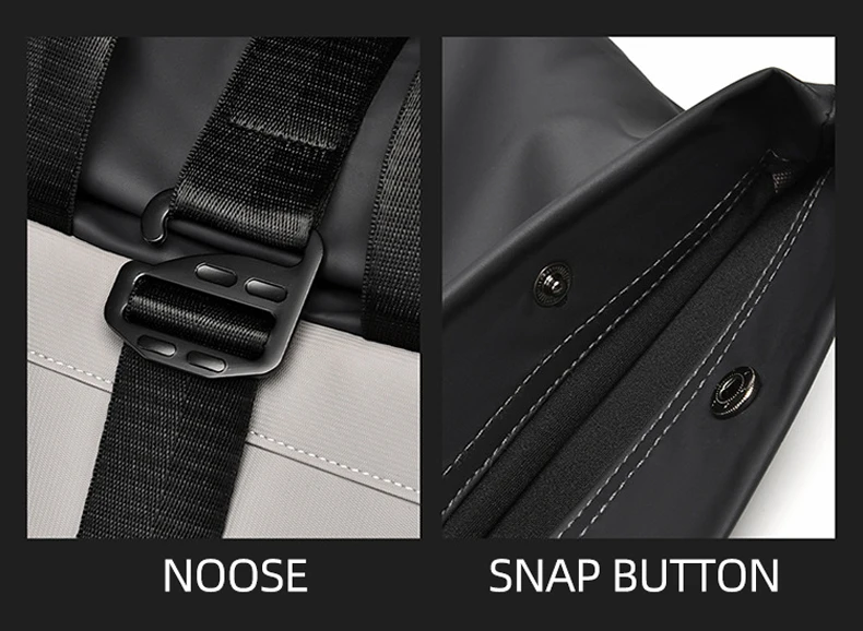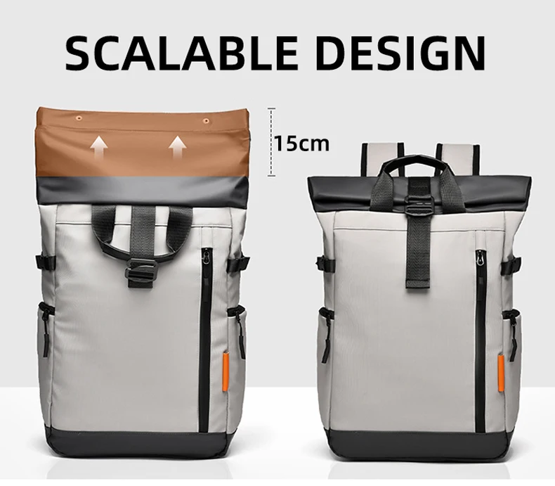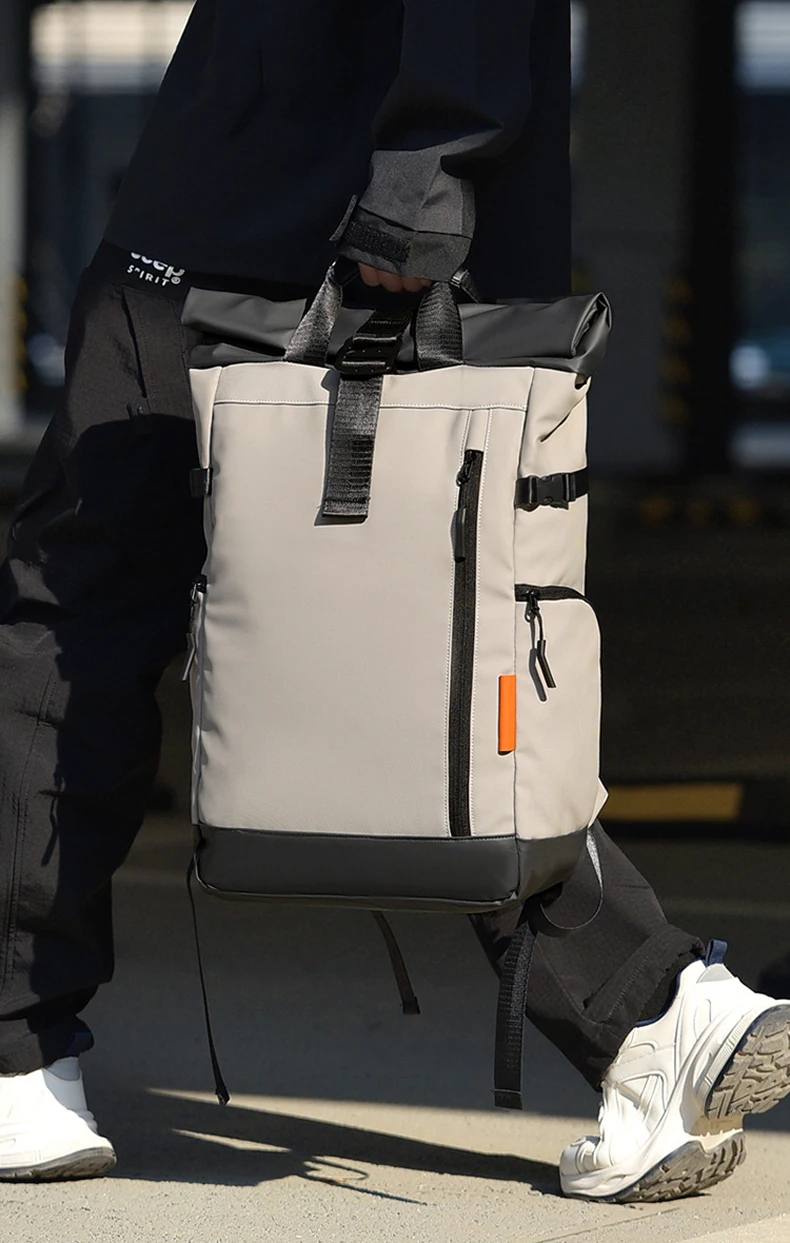1. The bag can be expanded by deformation: the roll mouth design, combined with the closure of the movable buckle, realizes the expansion function to a certain extent.