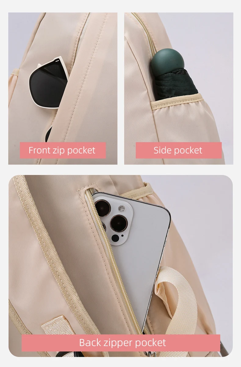 5.Bolsillos frontales y laterales con cremallera en tarjetas, llaves u otras cosas pequeñas.