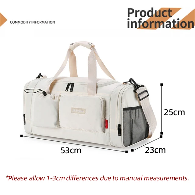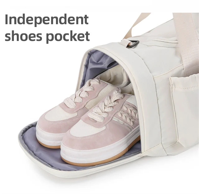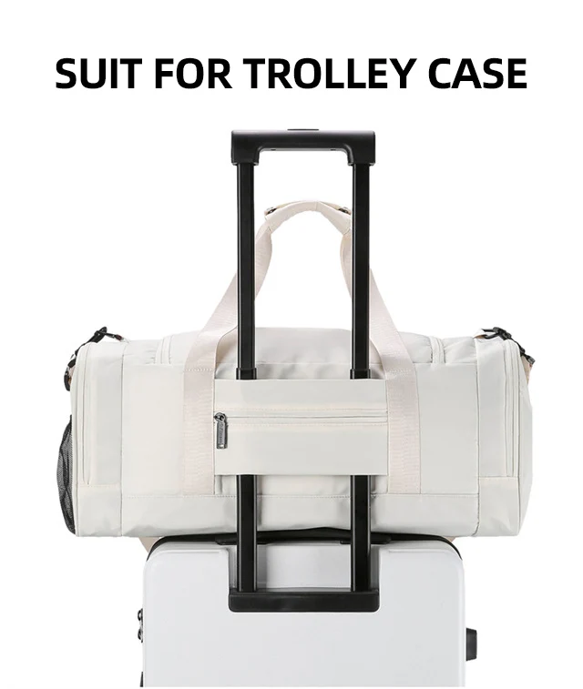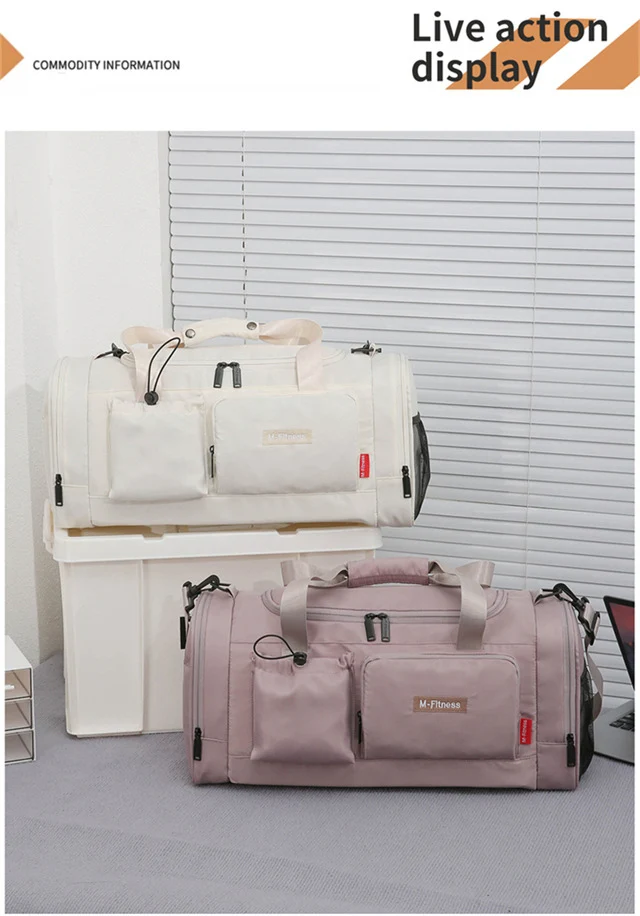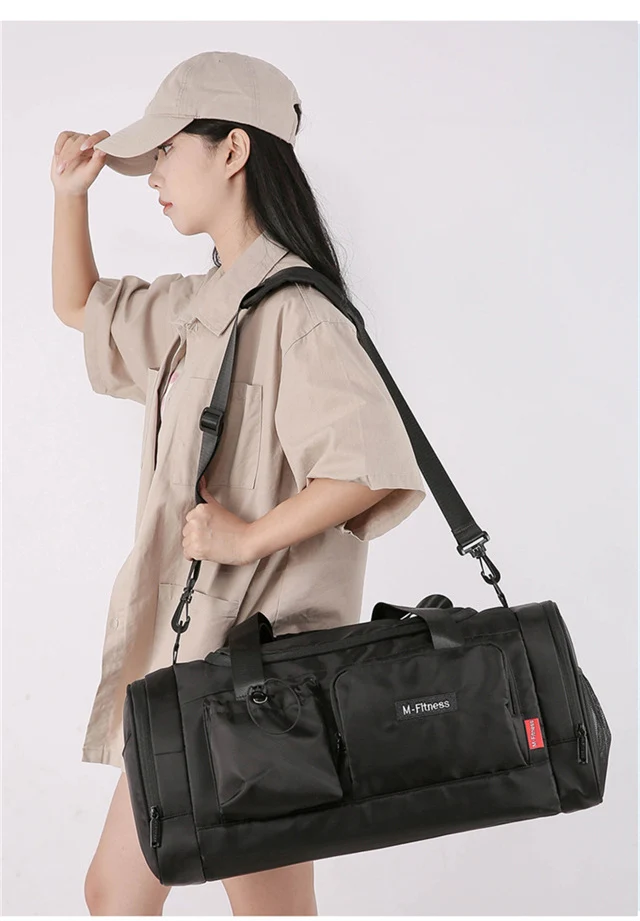 1. Nombre: Bolsa de gimnasio de viaje para mujeres, hombres, campamentos, caminatas, viajes, fines de semana, bolsa de lona para hombres y mujeres con bolsillo para guardar zapatos, separación en seco y húmedo y funda para trolley para viajar, natación, gimnasio, fitness