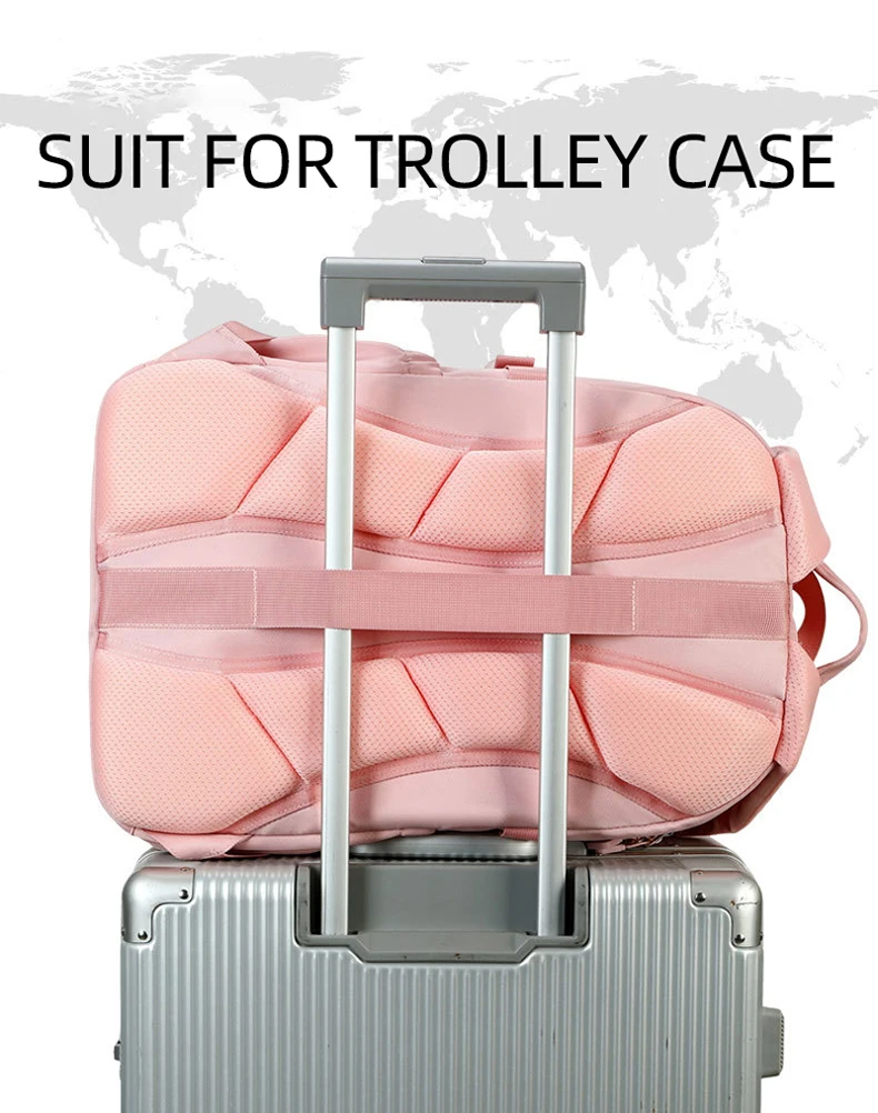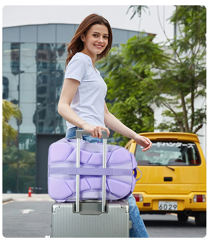 6. La correa en la parte posterior de la bolsa se puede sujetar al tirante del equipaje, lo cual es útil para viajar cómodamente.