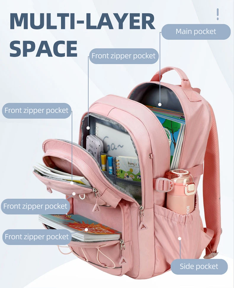 5.Almacenamiento multicapa: bolsa principal de gran capacidad, bolsa auxiliar multicapa, bolsa con cremallera y bolsa lateral