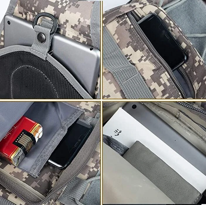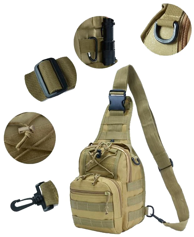 Bolsa táctica con una sola correa de hombro ajustable y cómoda, y también tiene dos correas más pequeñas para ayudar a reducir el balanceo de la bolsa mientras se mueve como una pequeña mochila militar Rover Honda.