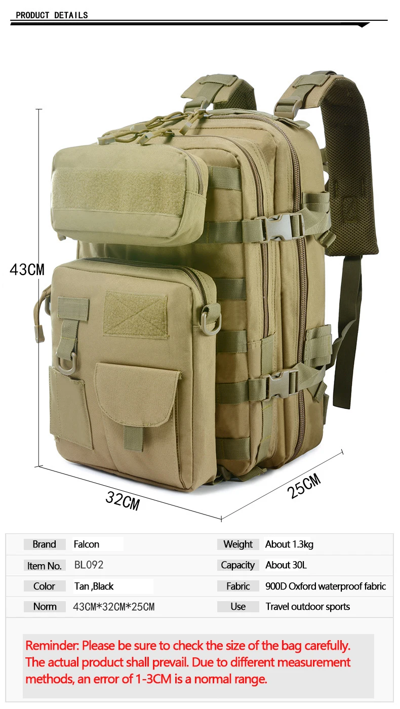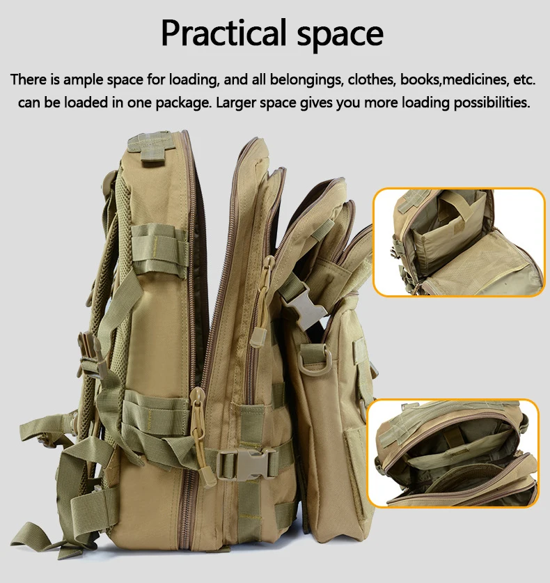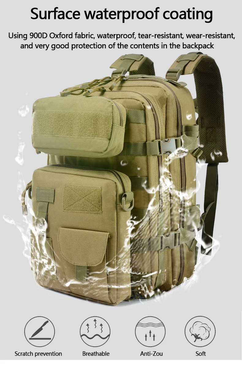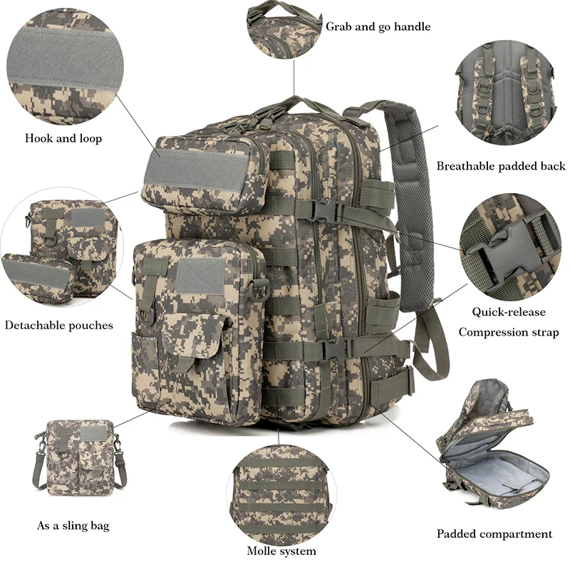 Mochila de hombro táctica Oxford 600D 3 en 1, bolsa de camuflaje militar del ejército, bolsa de 40L para senderismo al aire libre, Camping, viaje