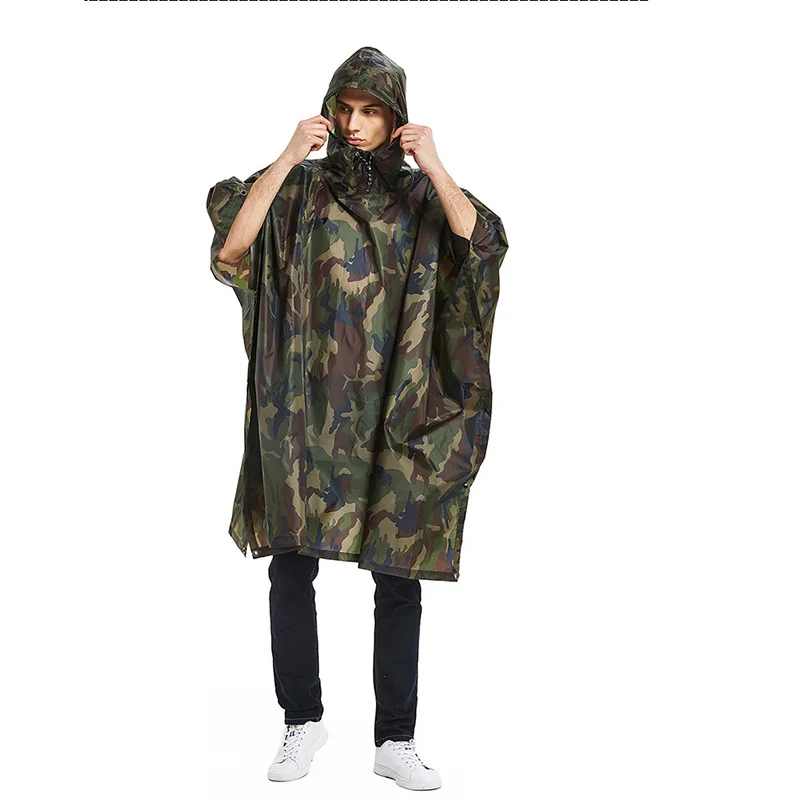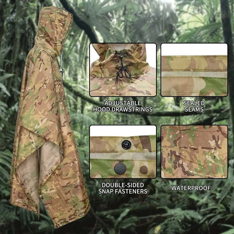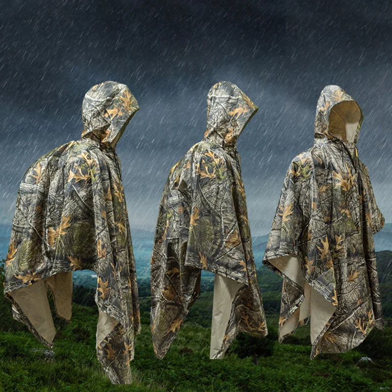 Chubasquero de camuflaje multifunción, se puede utilizar como impermeable, alfombra de tienda de campaña y toldo.