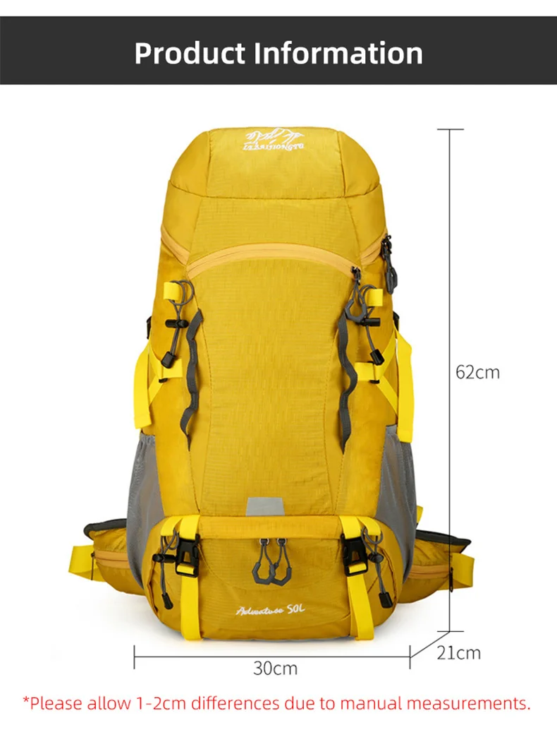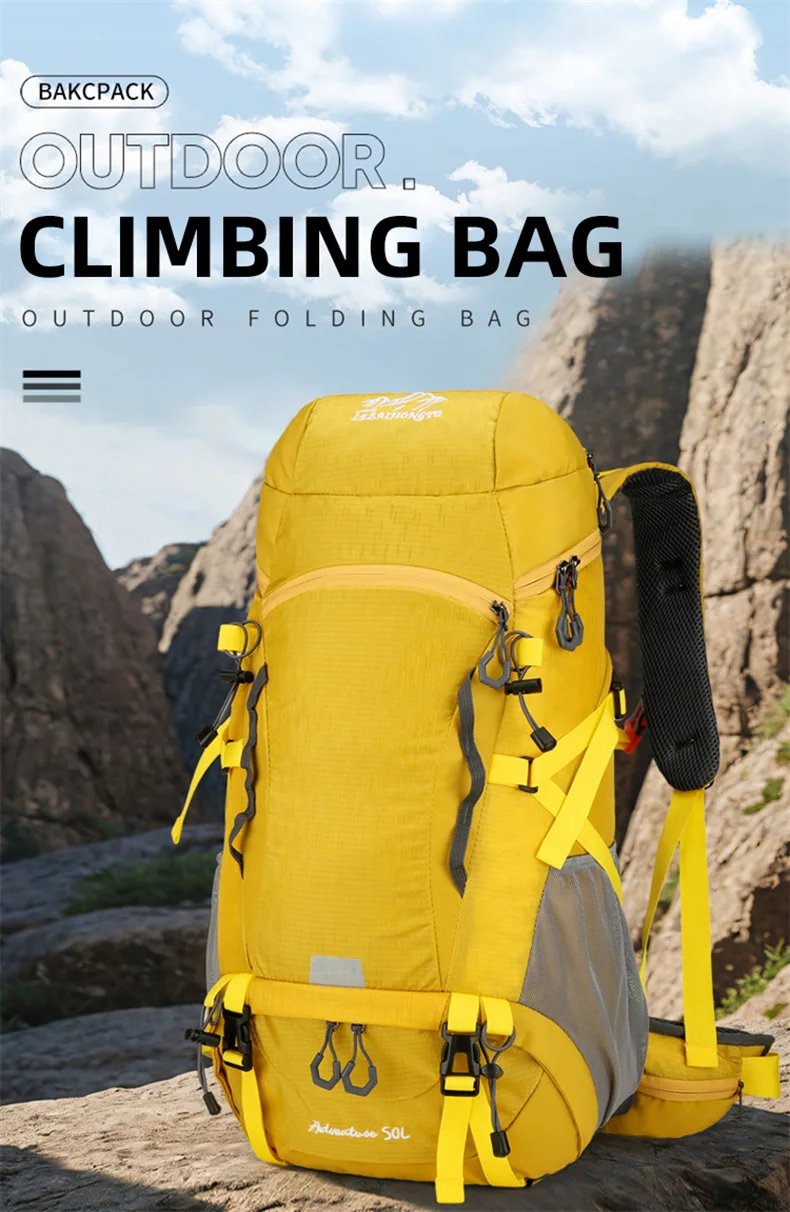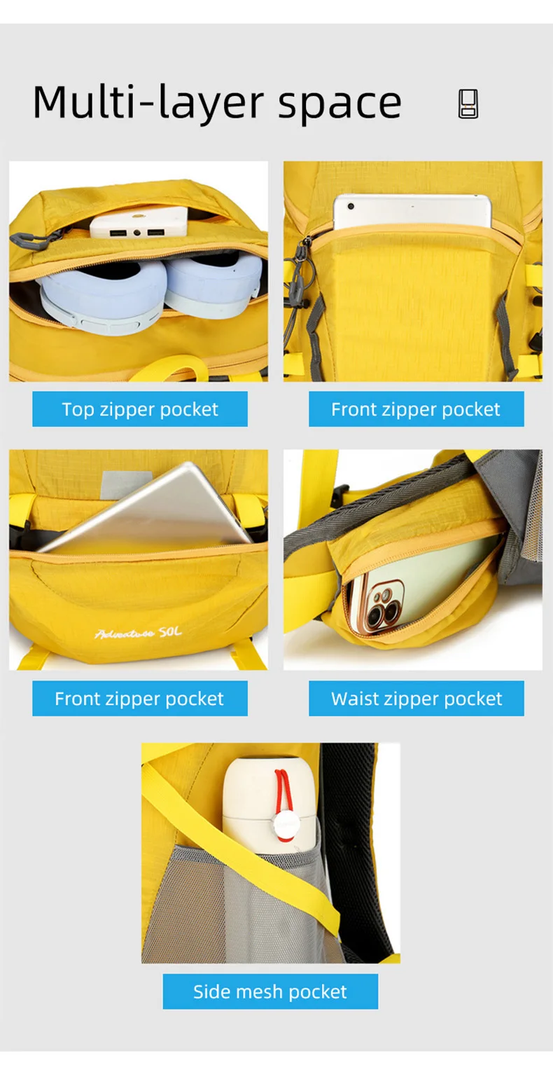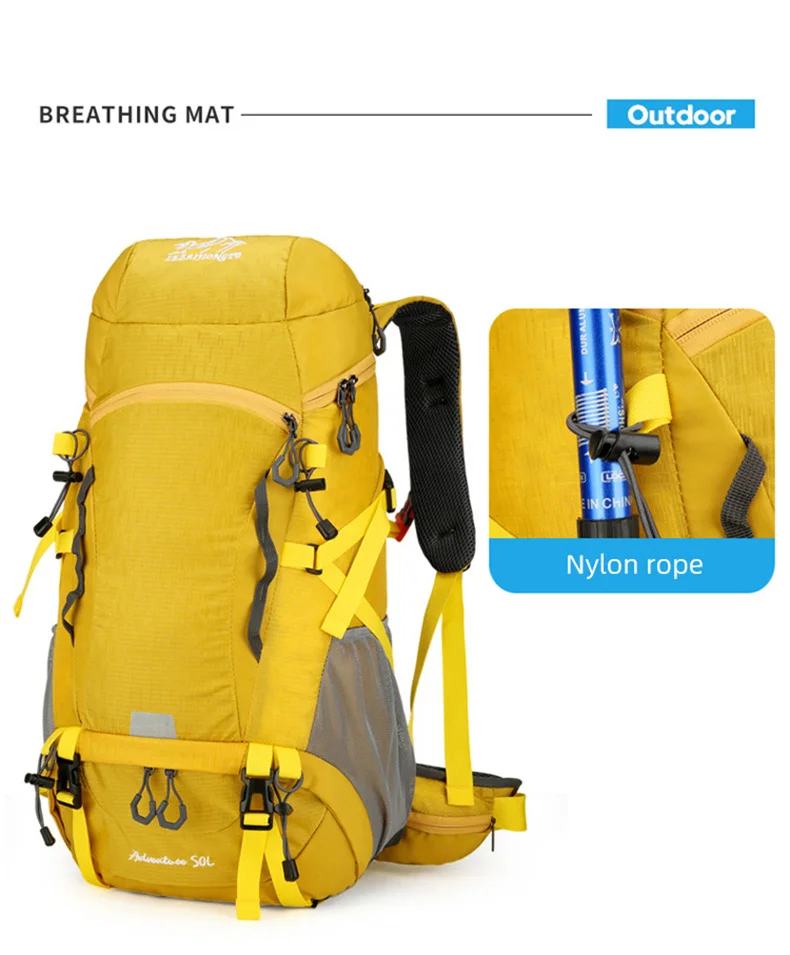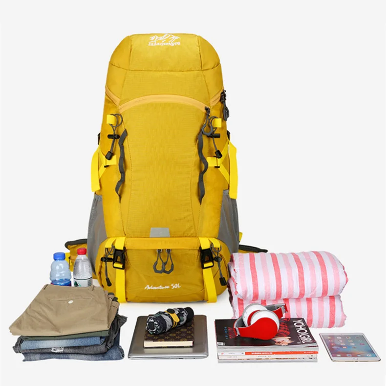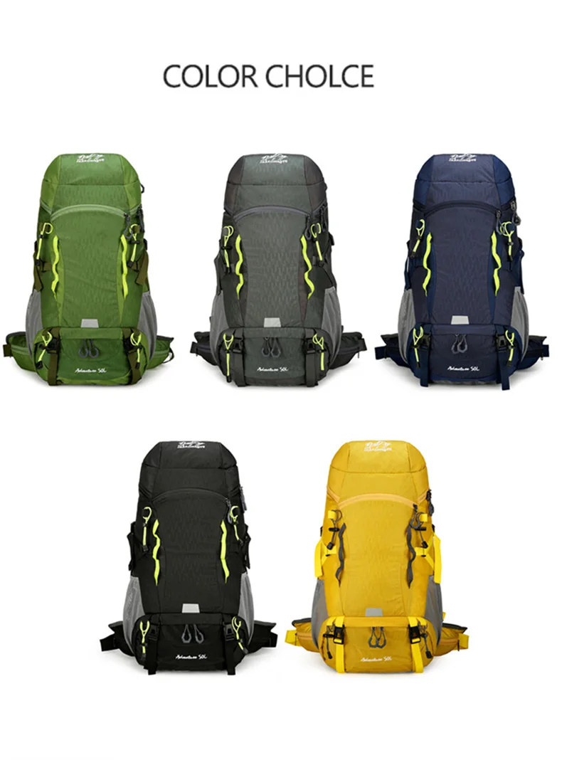 Mochila de Camping impermeable de 50L, bolso de hombro grande para senderismo, montañismo, senderismo, con cubierta para la lluvia, bolsa de deportes de viaje al aire libre para hombres