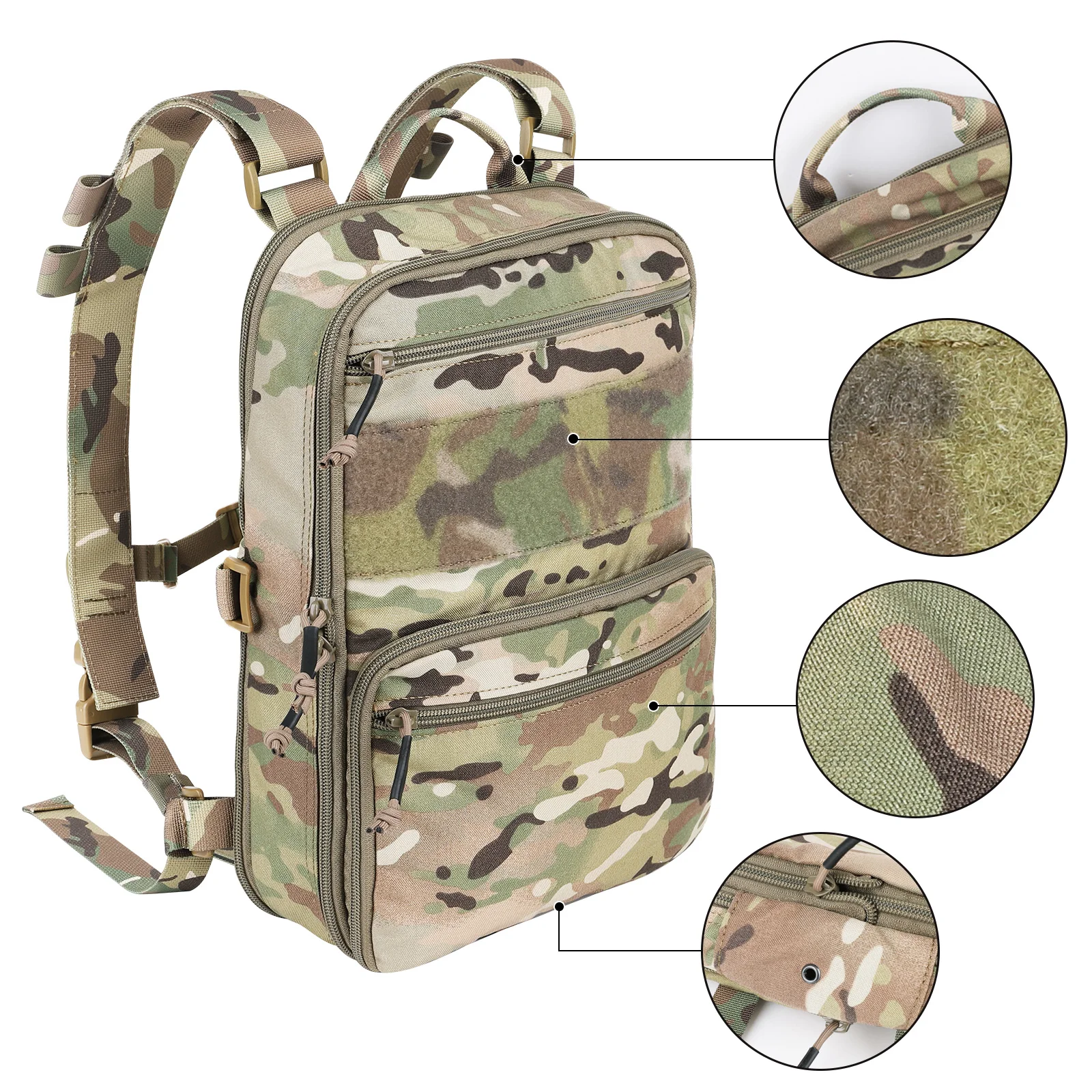 * El interior presenta un campo completo de gancho y bucle para permitir al usuario construir la mochila alrededor de su misión o estilo de mentira.