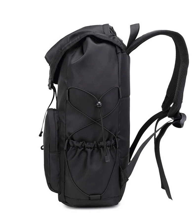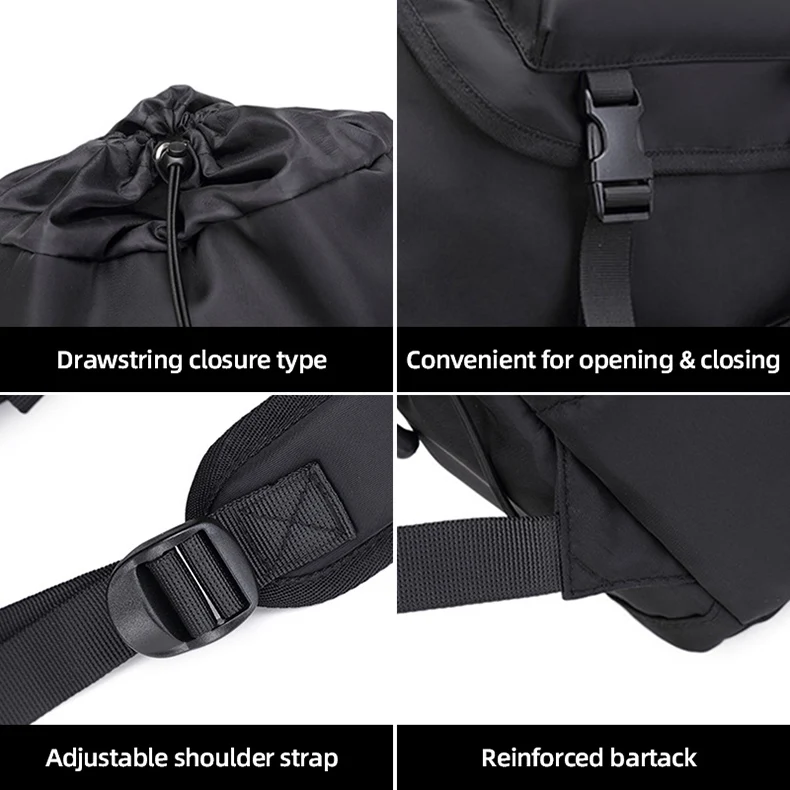1.Bolsillo principal de gran capacidad con compartimento para computadora incorporado y apertura con cordón para un almacenamiento más seguro.