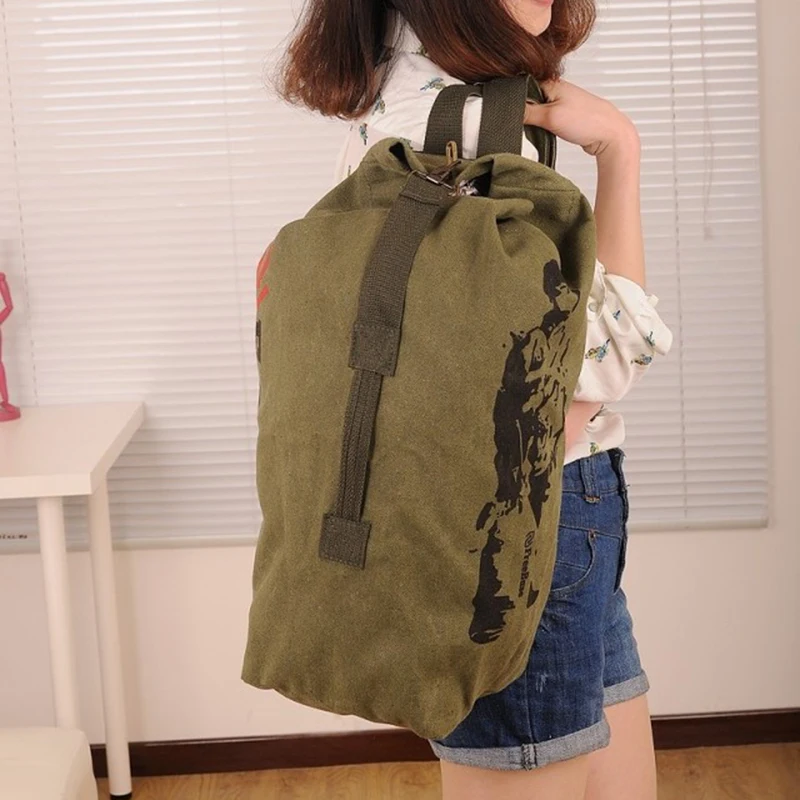 Mochila militar de lona para exteriores, Mochila para acampar, senderismo, bolso para hombres y mujeres, Mochila de viaje con cordón, Mochila del ejército