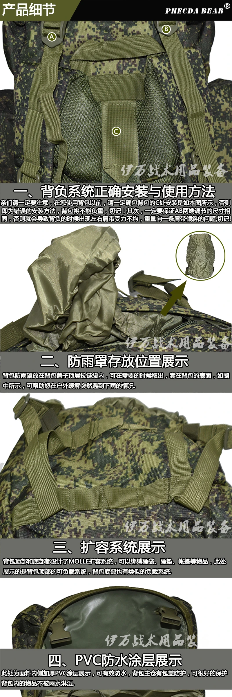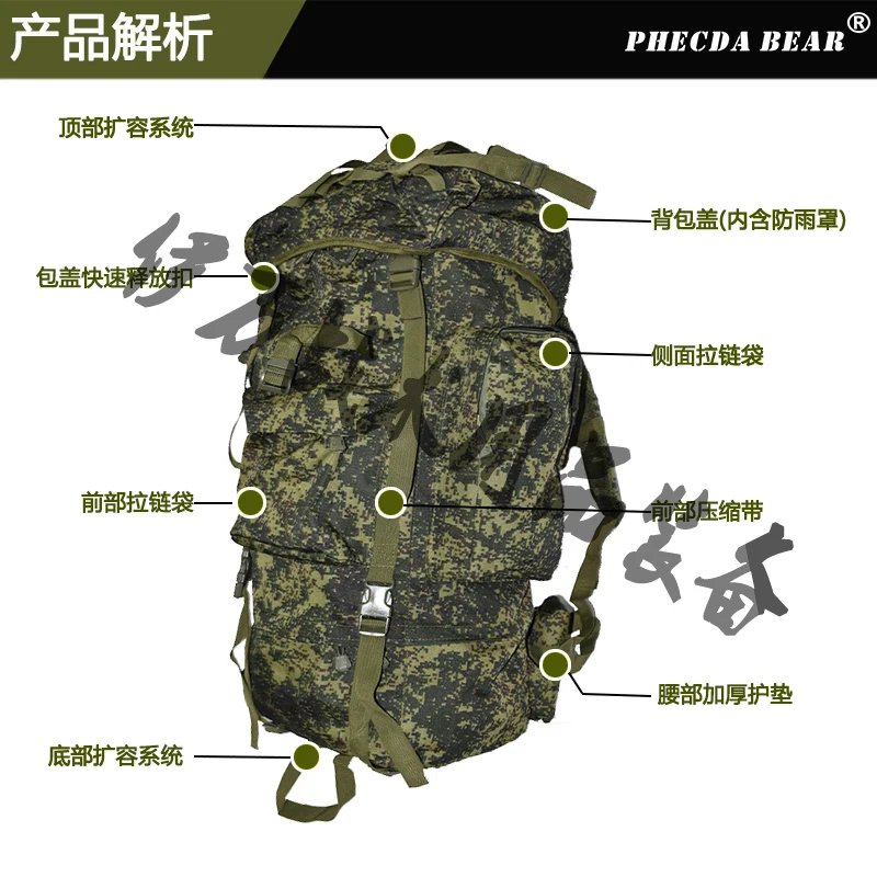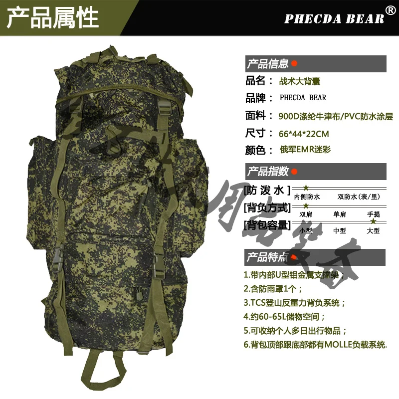 Mochila militar para exteriores para hombre, bolsa táctica para acampar, cubierta para lluvia, 65L