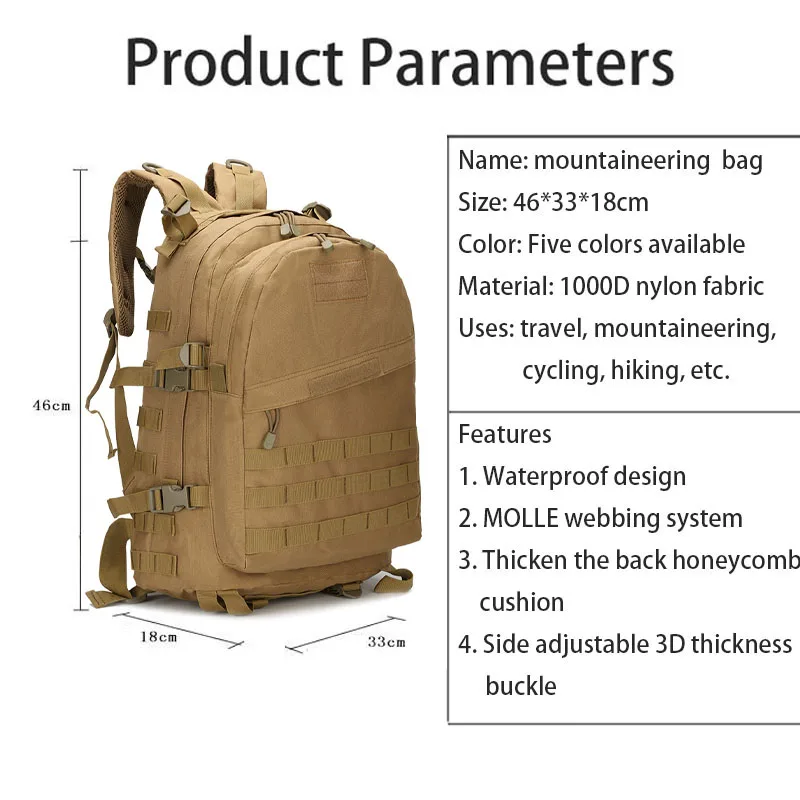 Mochila militar táctica para hombre, mochila para senderismo al aire libre, bolsas de asalto deportivas, bolsa Molle para acampada, Trekking, bolsa de caza del ejército Edc