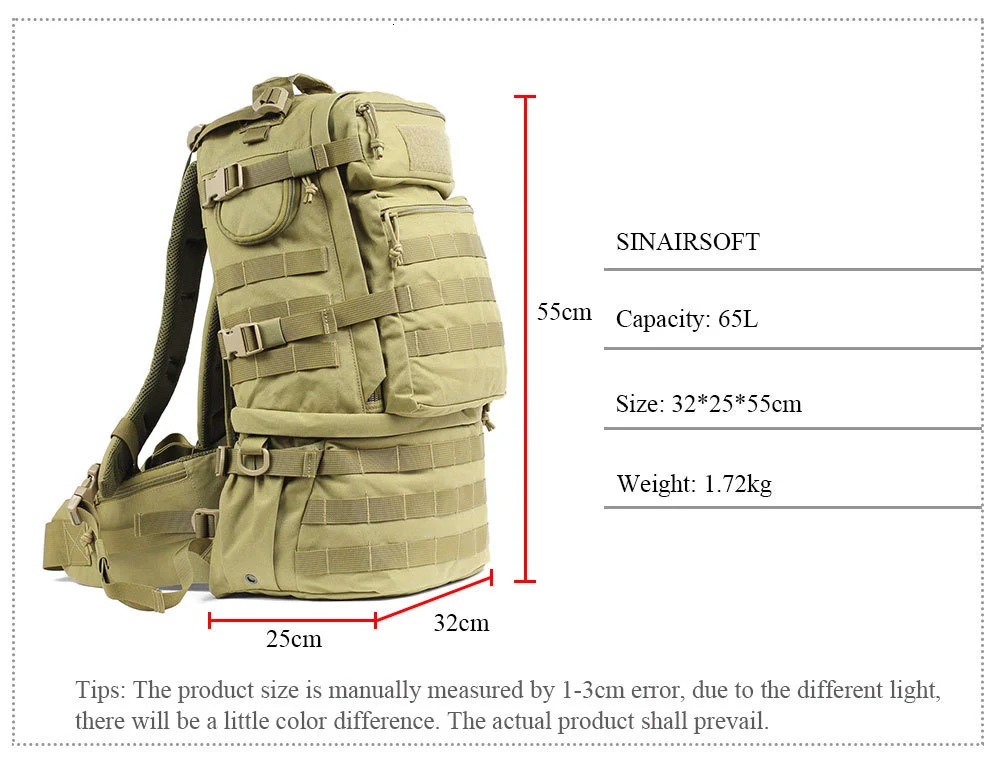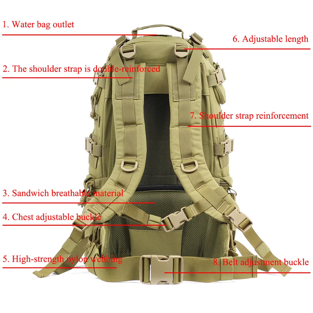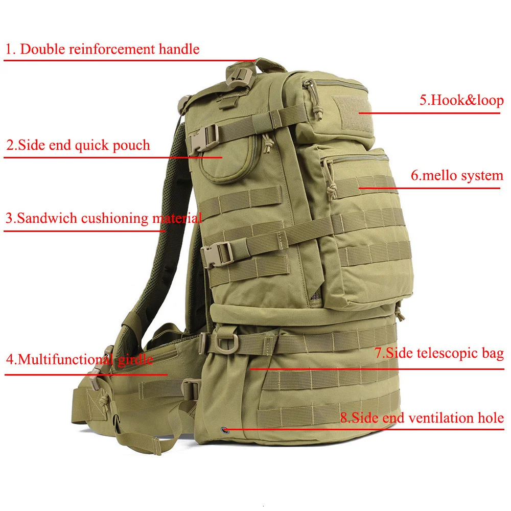 Mochila militar táctica multifunción para exteriores, bolsa Molle impermeable para pesca, senderismo, caza, Camping, 65L