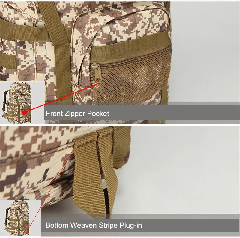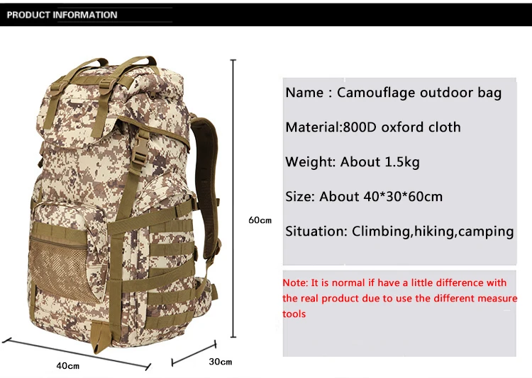 Mochila Molle de 60L para acampar, bolsa táctica militar grande, mochilas impermeables, camuflaje, senderismo, bolsas militares al aire libre