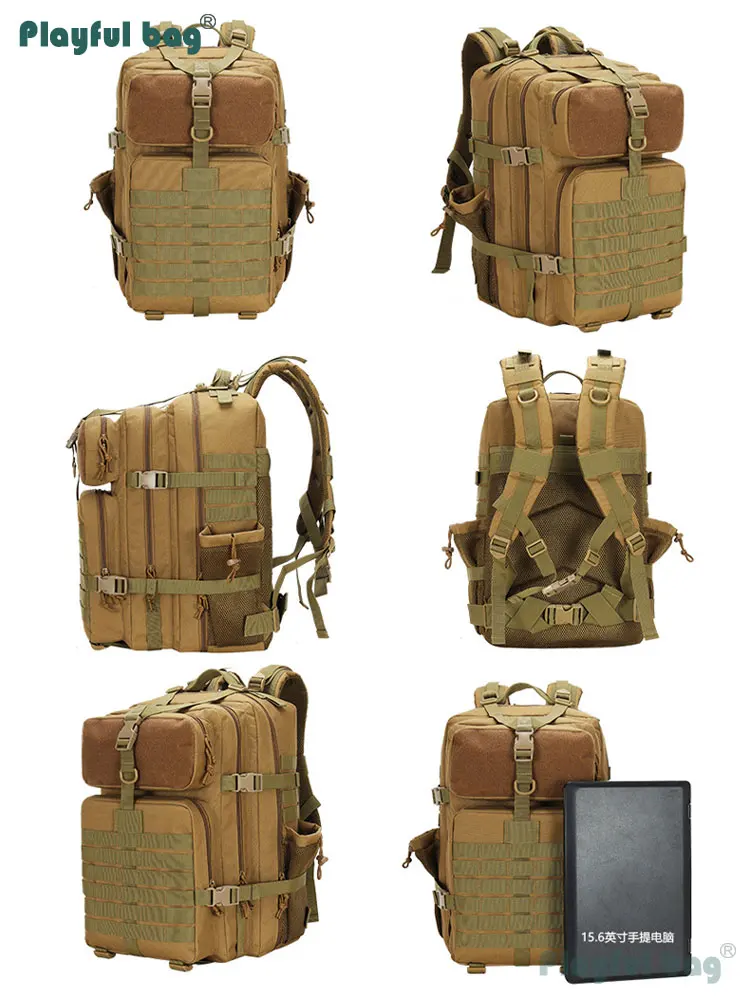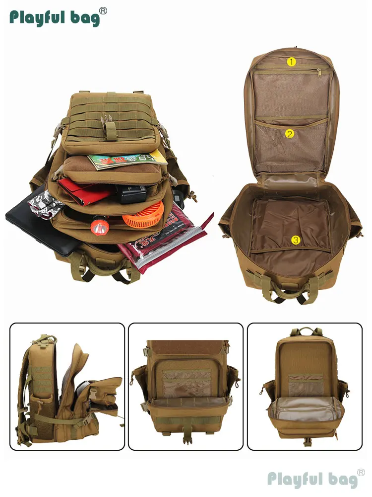 Mochila de montaña al aire libre de 45L, bolsas para ordenador portátil de viaje, mochila MOLLE impermeable para montañismo, caza, AVA42