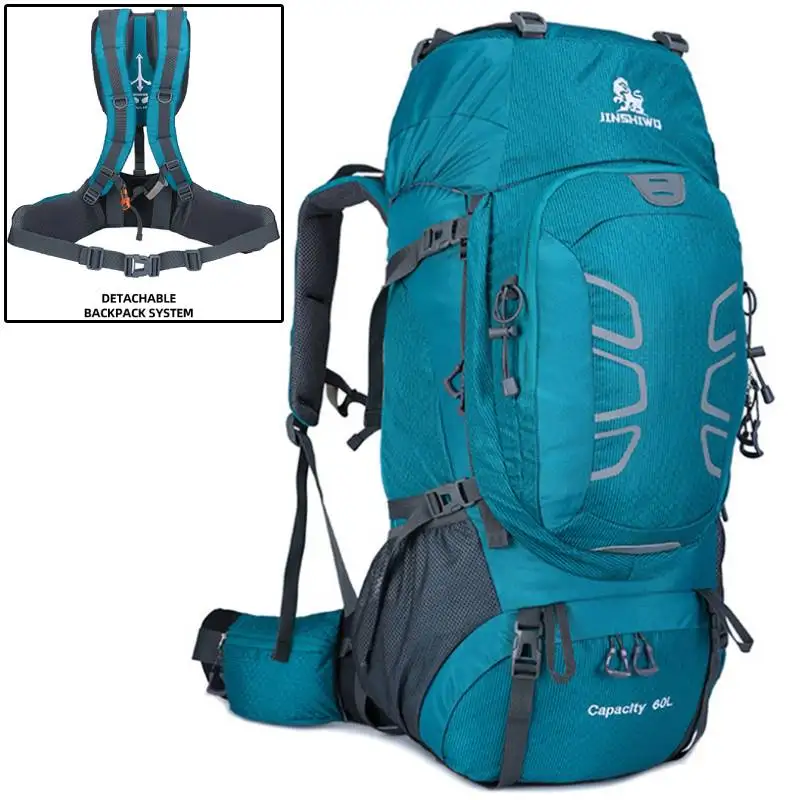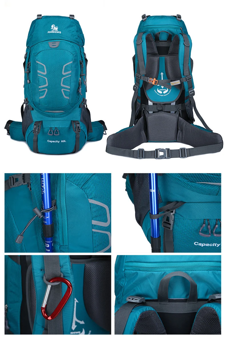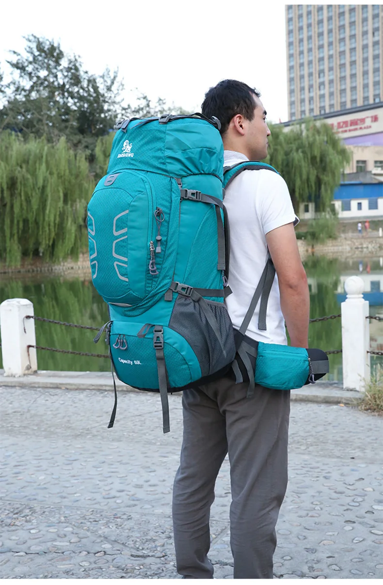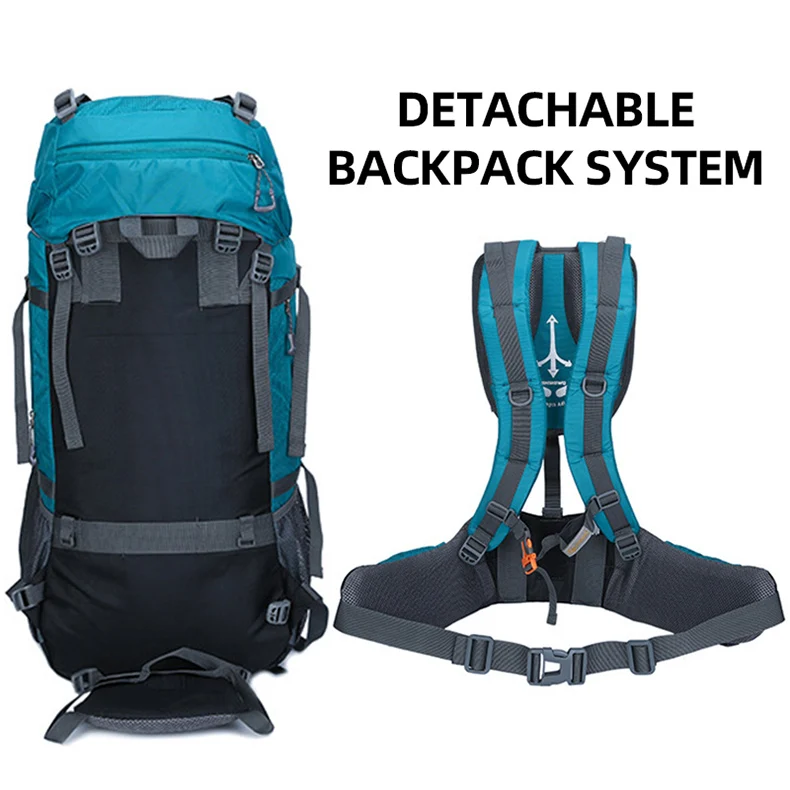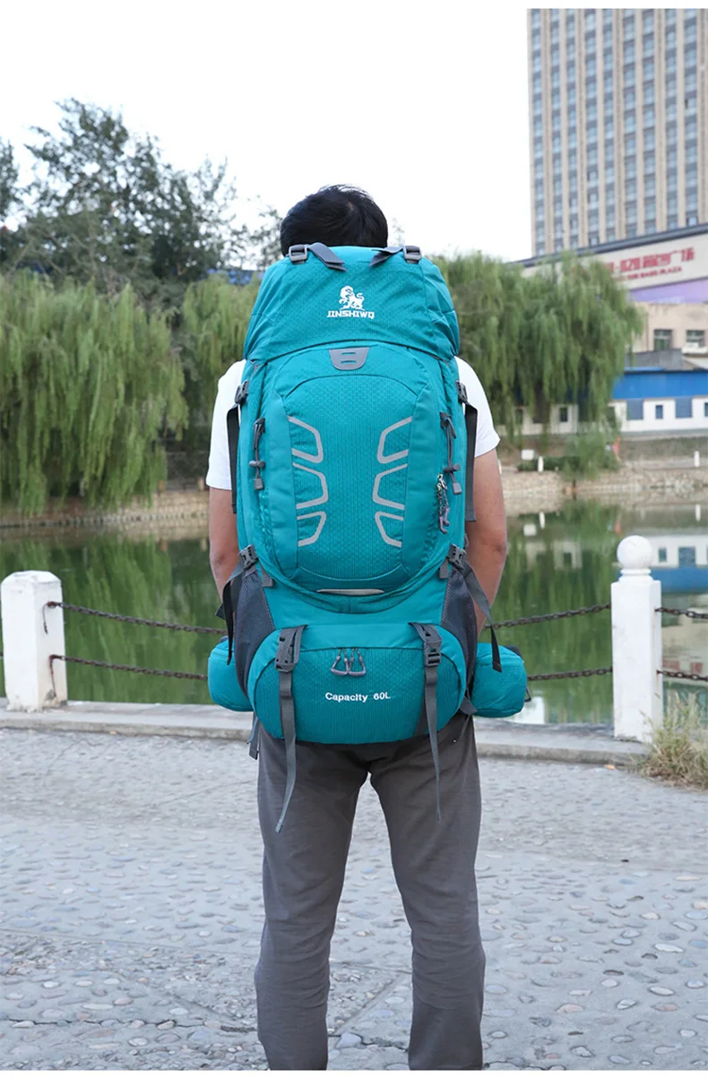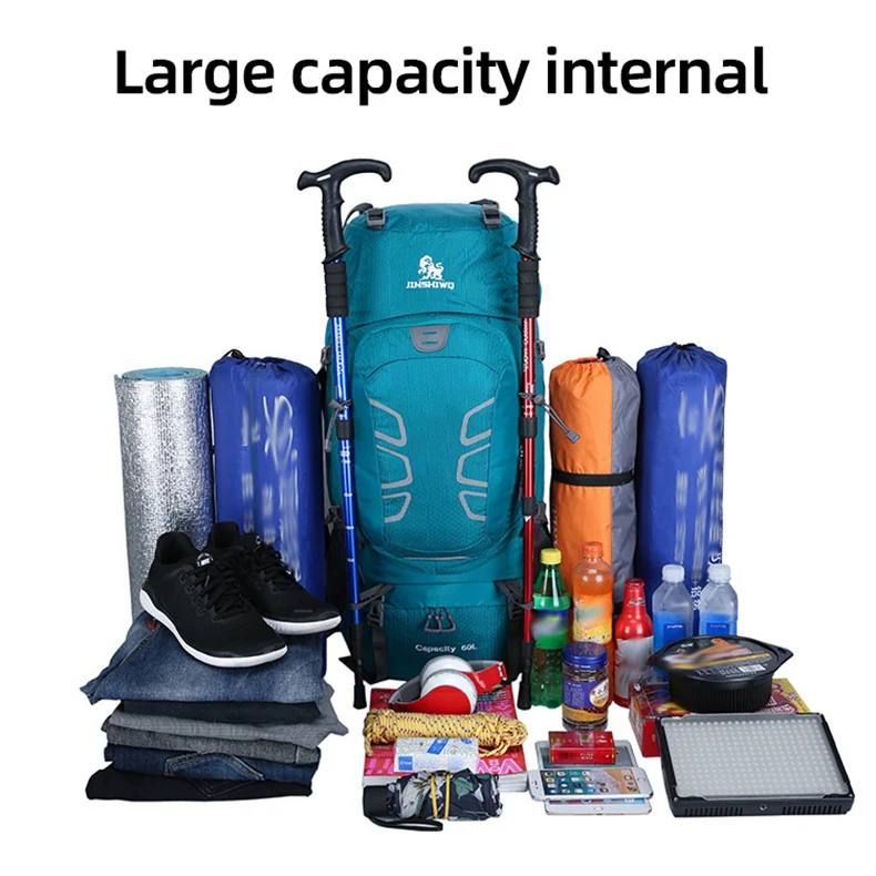 Bolsa de viaje para montañismo al aire libre de 60L, mochila de senderismo de gran capacidad, bolsa de hombro con protección de cintura y reducción de carga