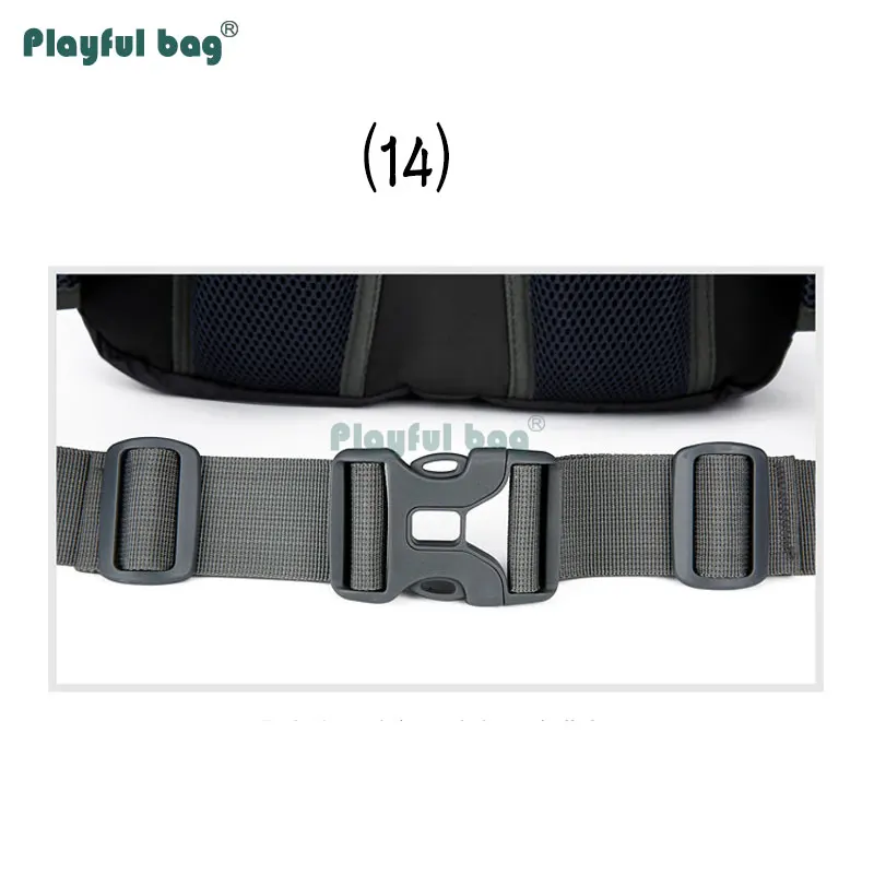 (14) Hebilla fuerte en la cintura, conveniente para fijar la mochila.