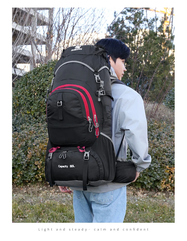 Mochila de viaje para deportes y escalada de 80L, bolsa de gran capacidad para senderismo al aire libre, senderismo, montañismo, compartimento para zapatos, mochila para acampar