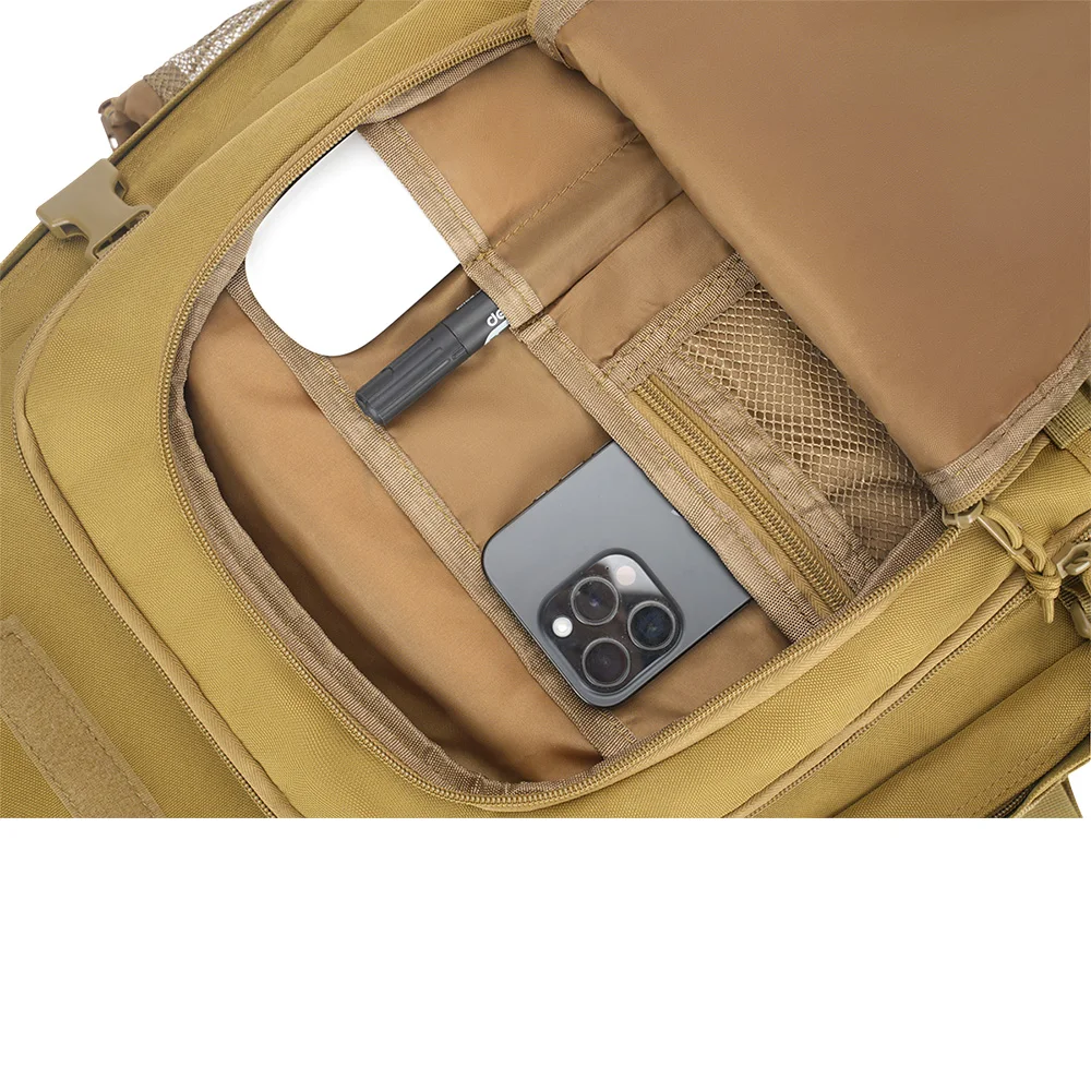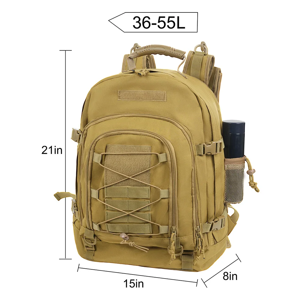 1.Esta mochila altamente versátil y multifuncional está diseñada para una amplia gama de usuarios y adecuada para diversas ocasiones, incluidas actividades al aire libre como viajes, caminatas y caza.Es una mochila unisex que ofrece funcionalidad y personalización a través de su sistema MOLLE integrado, lo que permite a los usuarios colocar bolsas adicionales o personalizar la apariencia con parches, insignias o banderas de bricolaje.